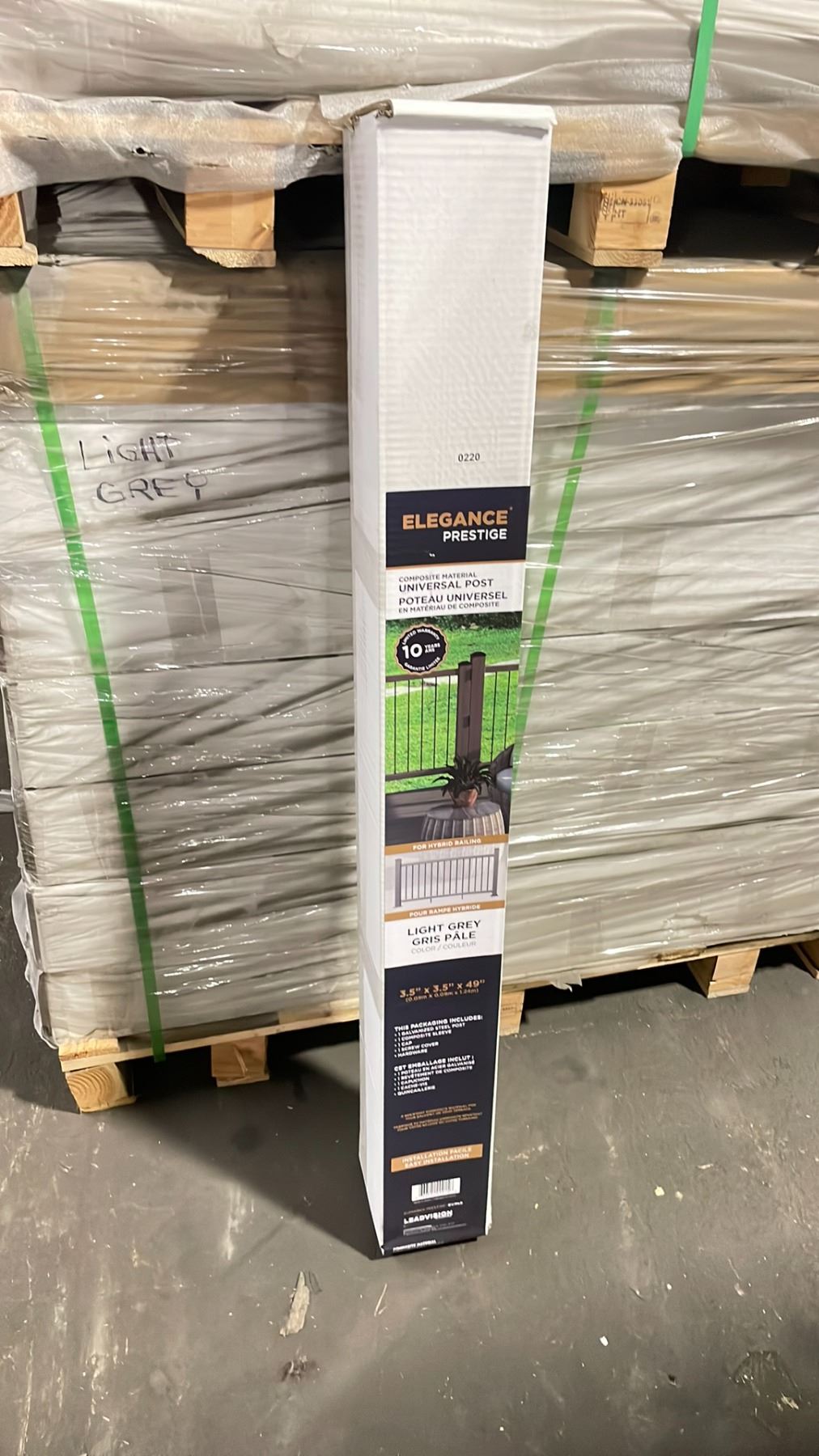 PALLET OF ELEGANCE PREMIUM COMPOSITE 3.5" X 3.5" X 49" DECK RAILING UNIVERSAL POST *LIGHT GREY* 42 BOXES *MUST TAKE ALL ON PALLET*