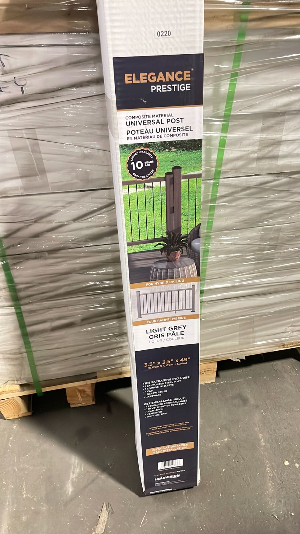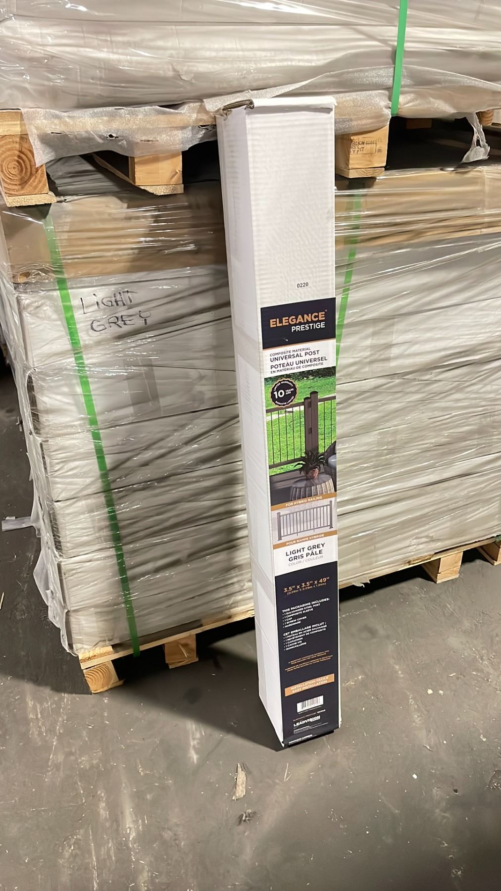 PALLET OF ELEGANCE PREMIUM COMPOSITE 3.5" X 3.5" X 49" DECK RAILING UNIVERSAL POST *LIGHT GREY* 42 BOXES *MUST TAKE ALL ON PALLET*