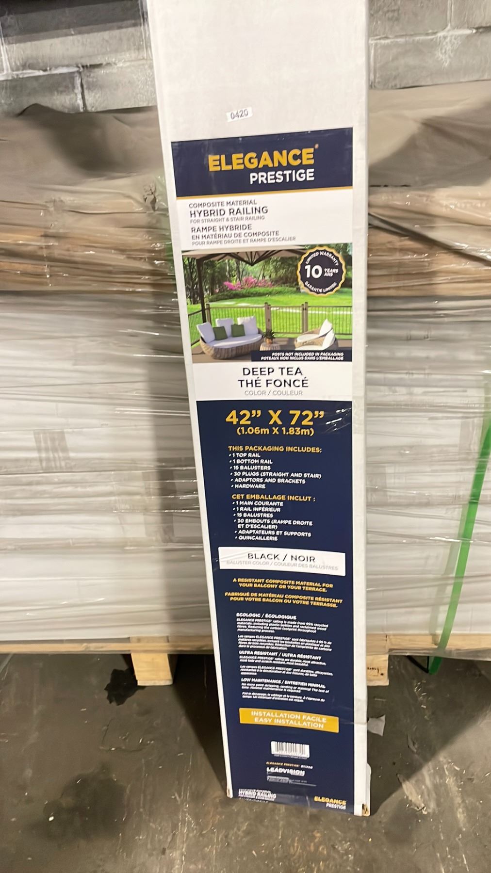 PALLET OF ELEGANCE PREMIUM COMPOSITE 45" X 72" DECK RAILING *DEEP TEA* FOR STRAIGHT & STAIR RAILING 48 BOXES TOTAL *MUST TAKE ALL ON PALLET*