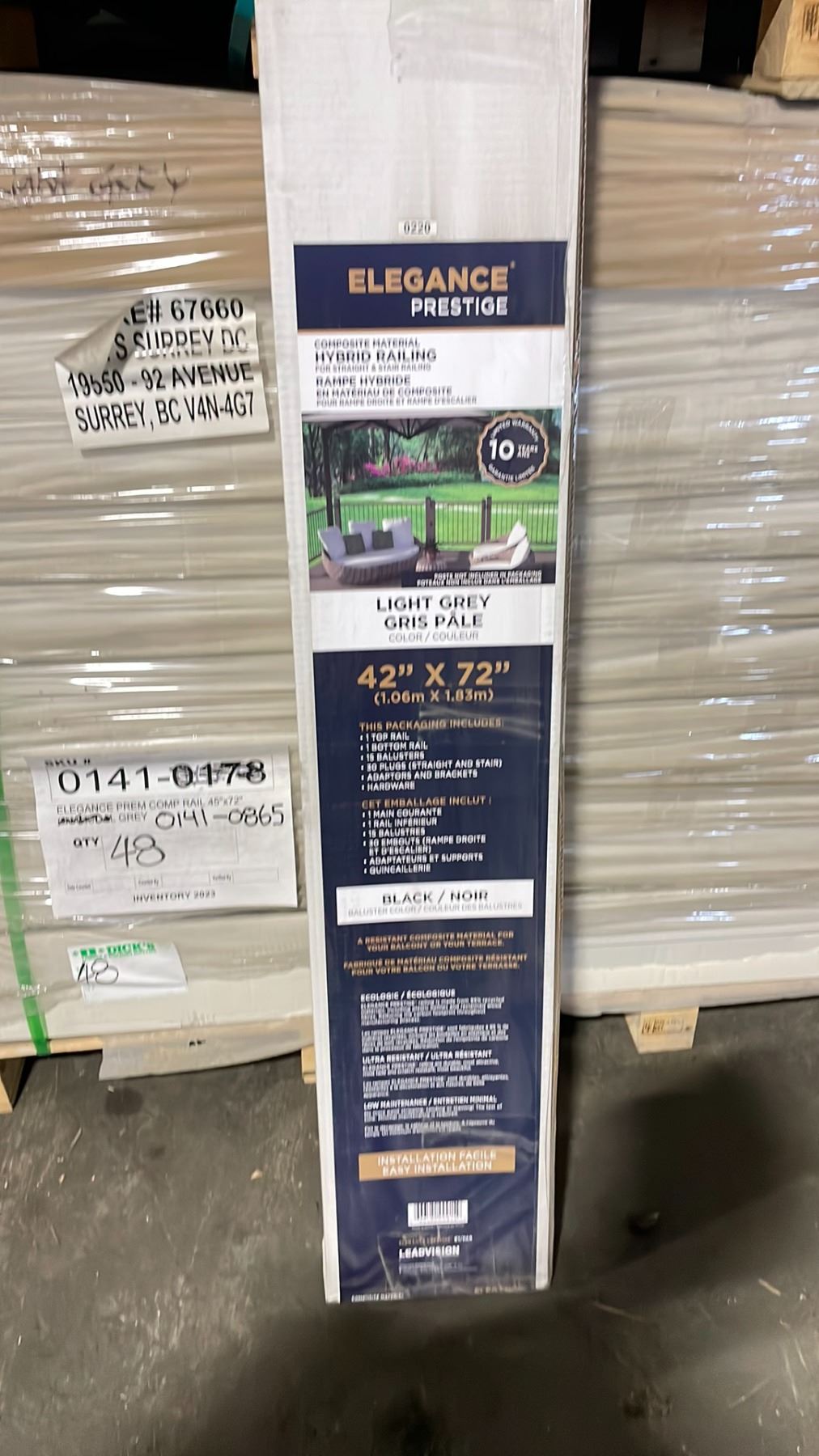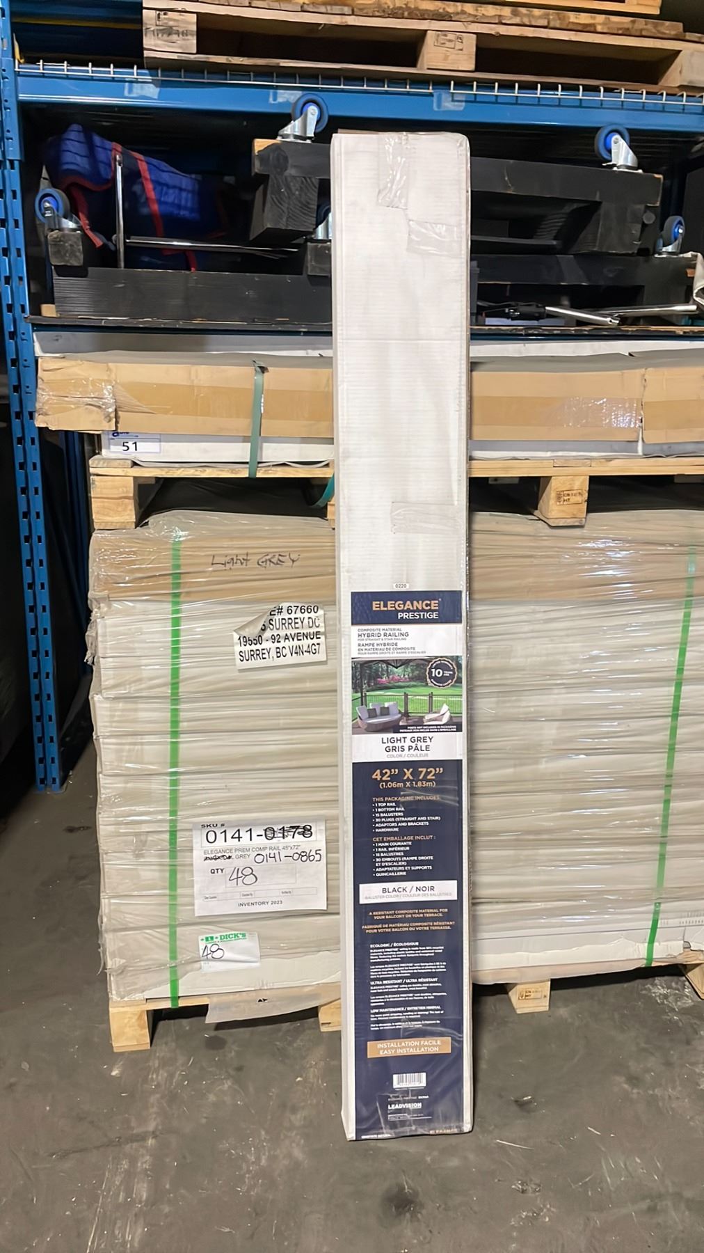 PALLET OF ELEGANCE PREMIUM COMPOSITE 45" X 72" DECK RAILING *LIGHT GREY* FOR STRAIGHT & STAIR RAILING 48 BOXES TOTAL *MUST TAKE ALL ON PALLET*