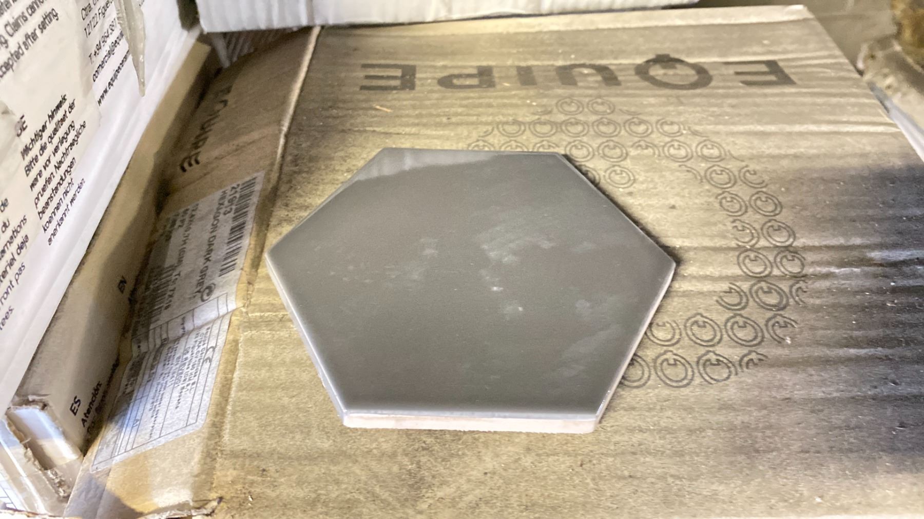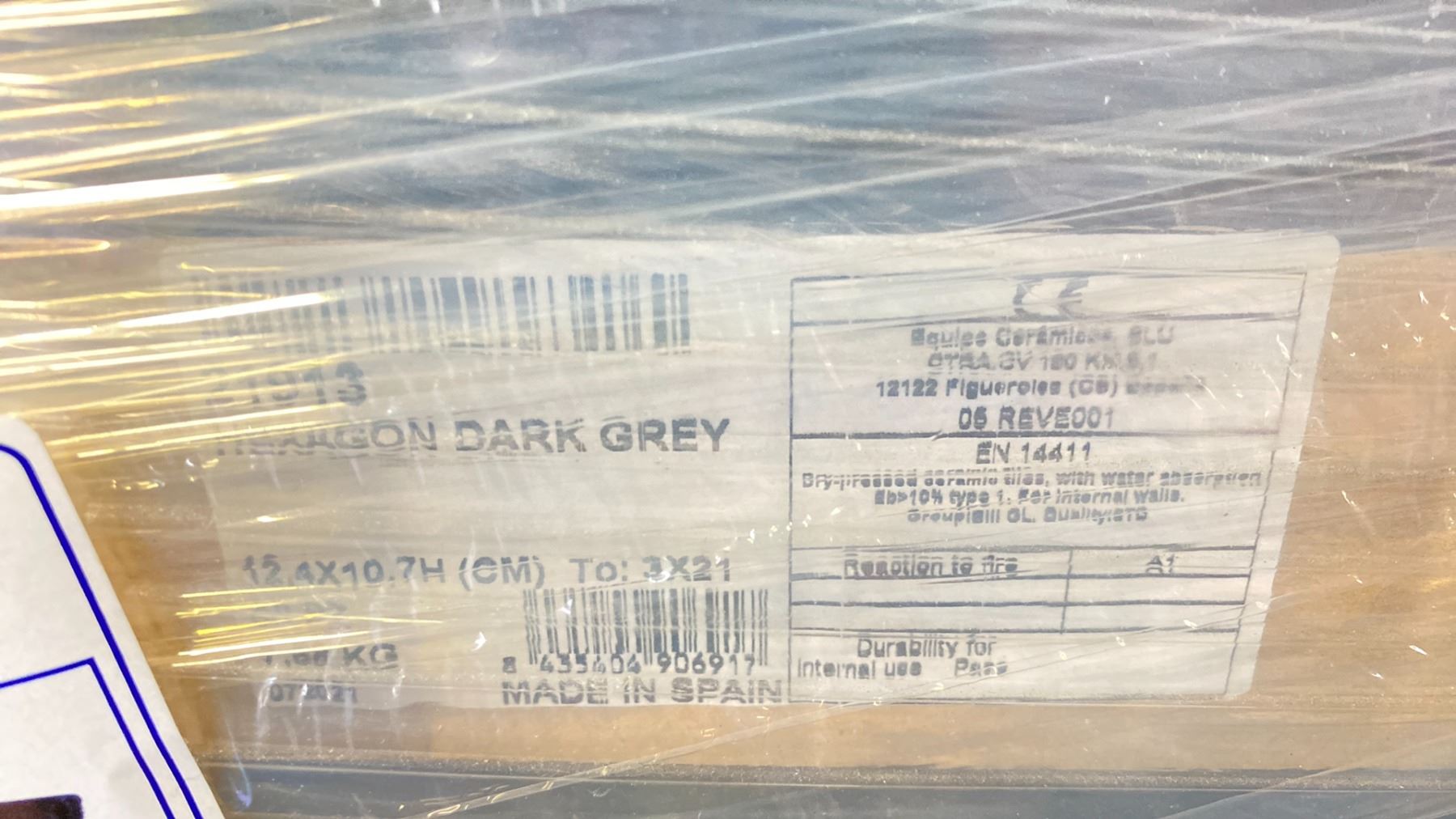 PALLET OF EQUIPE 21913 HEXAGON DARK GREY 12.4CM X 10.7CM TILE - 50 PCS PER BOX APPROX. 40 BOXES
