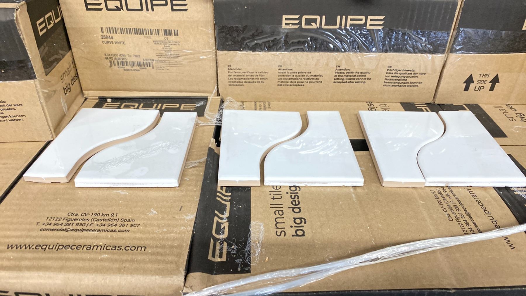 PALLET OF EQUIPE 8.3X12CM TILES, COLOUR CURVE WHITE, 68 PIECES PER BOX, APPROX 32 BOXES