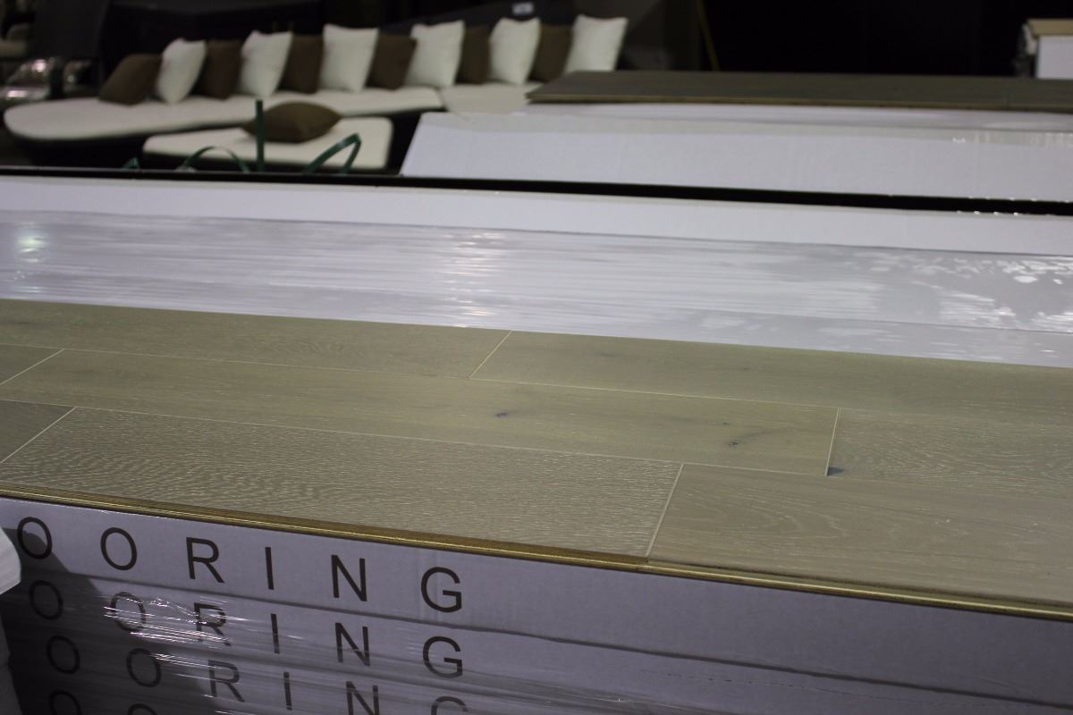 PALLET OF FALSE CREEK GREY ENGINEERED REAL WOOD FLOORING 72 BOXES - 1704 SQ FT