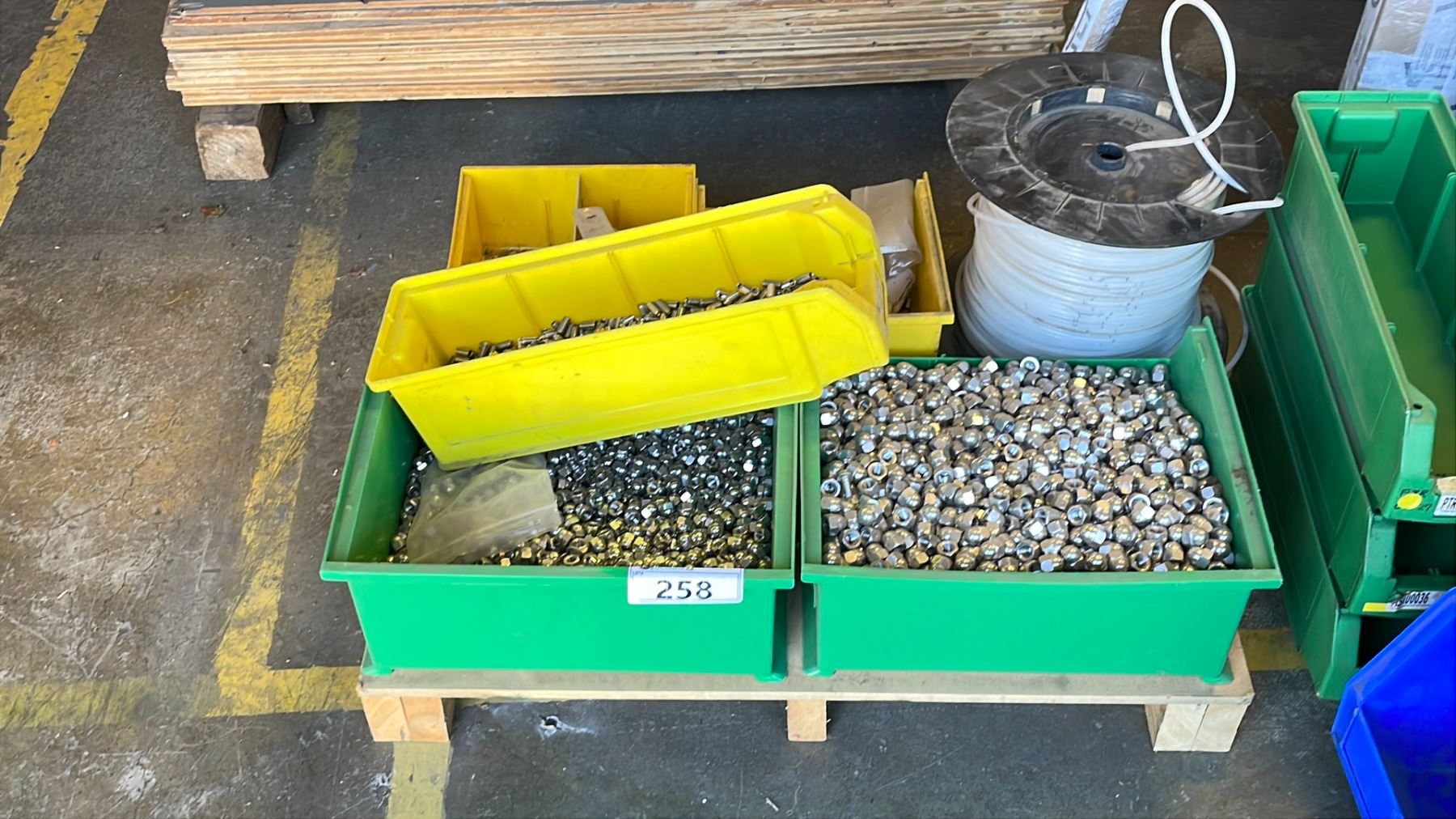 PALLET OF FASTENERS AND PLASTIC TUBING