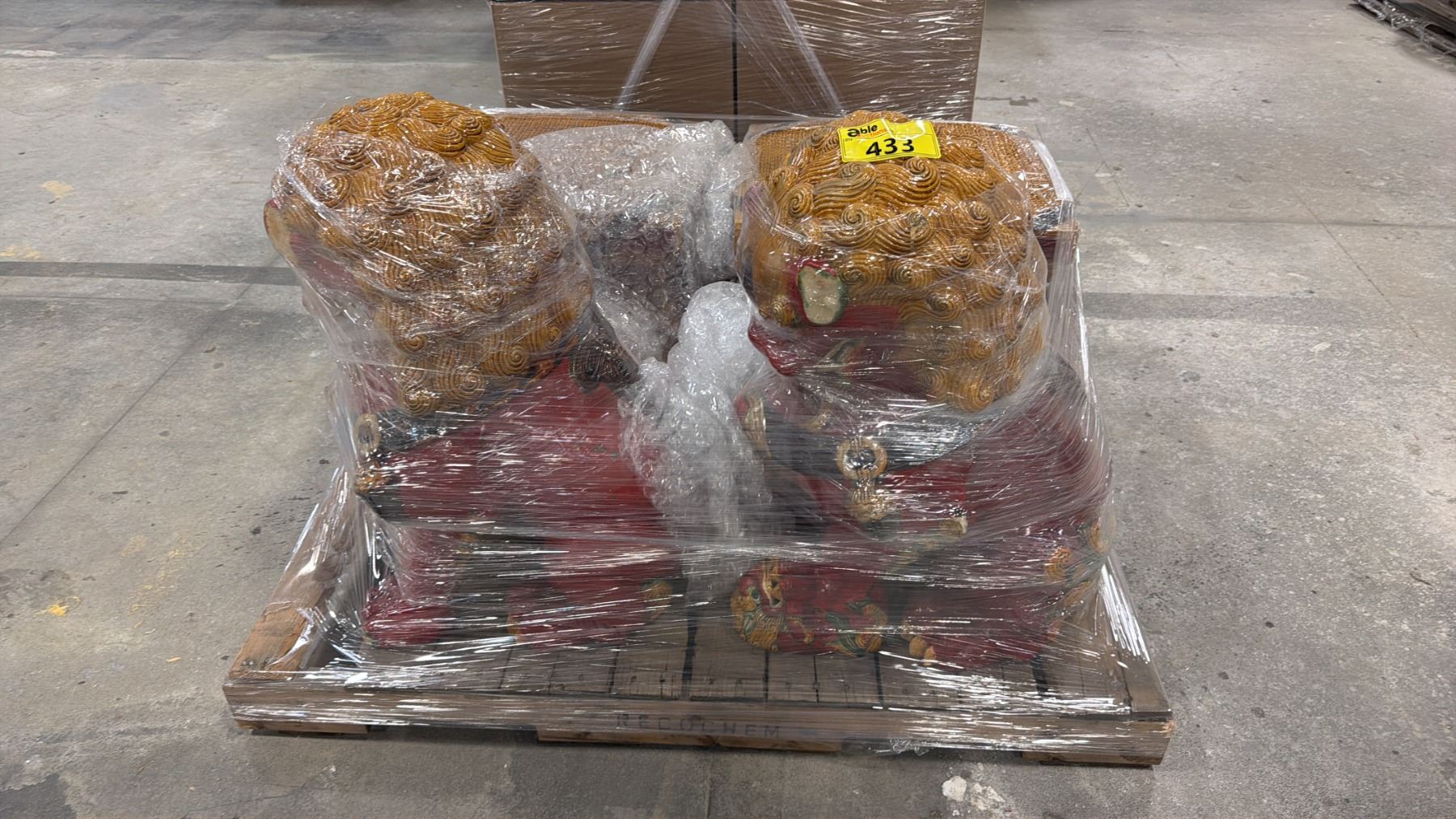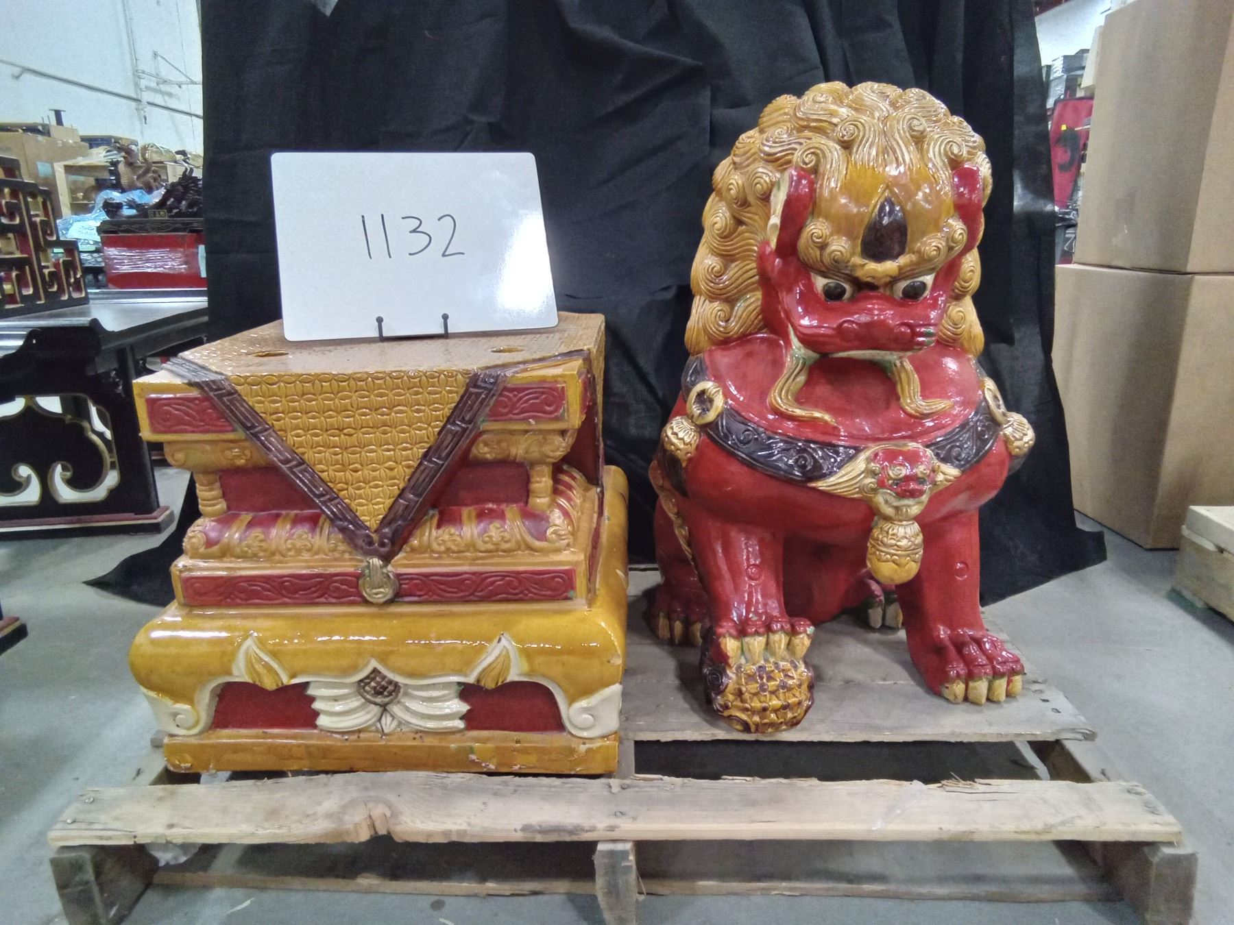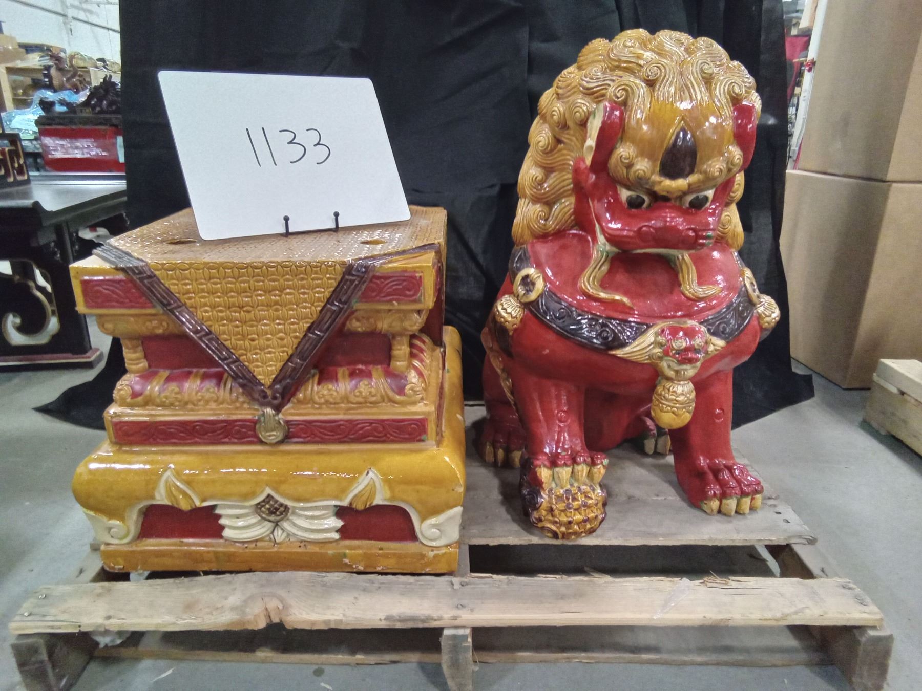 PALLET OF FU DOG STATUES & PROP FURNITURE