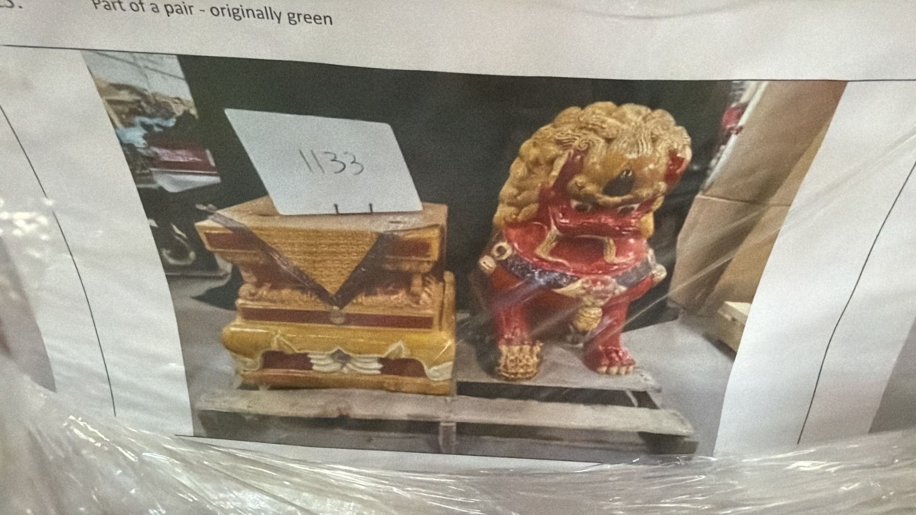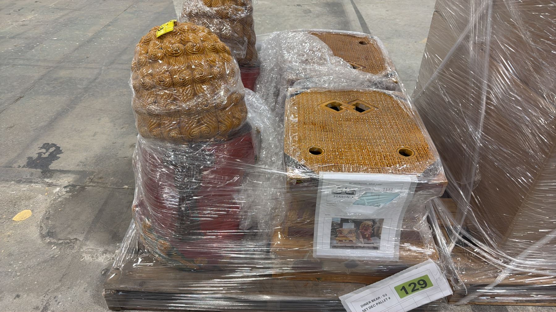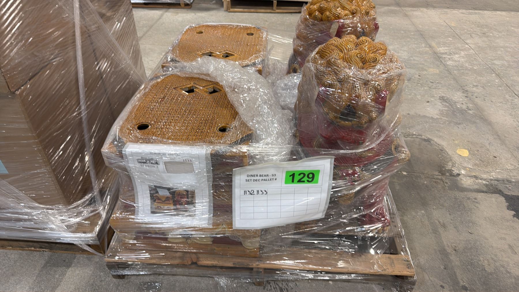 PALLET OF FU DOG STATUES & PROP FURNITURE
