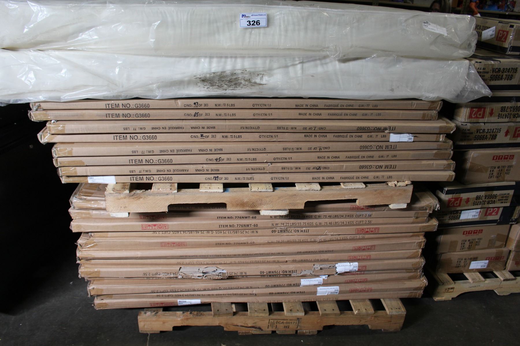 PALLET OF GLASS TOPS AND 2 FOAM MATTRESSES