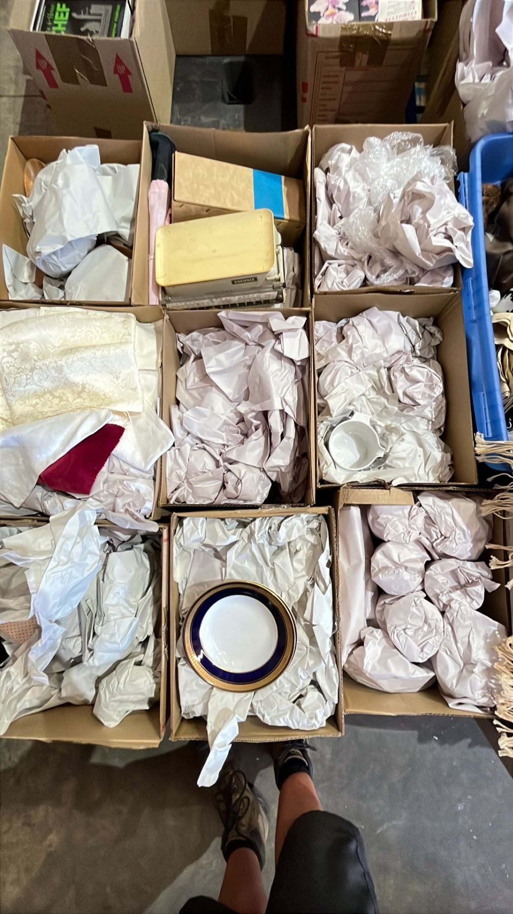PALLET OF GLASSWARE, TABLE RUNNERS, COSTUME JEWELLERY & MORE *MUST TAKE ALL ON PALLET*