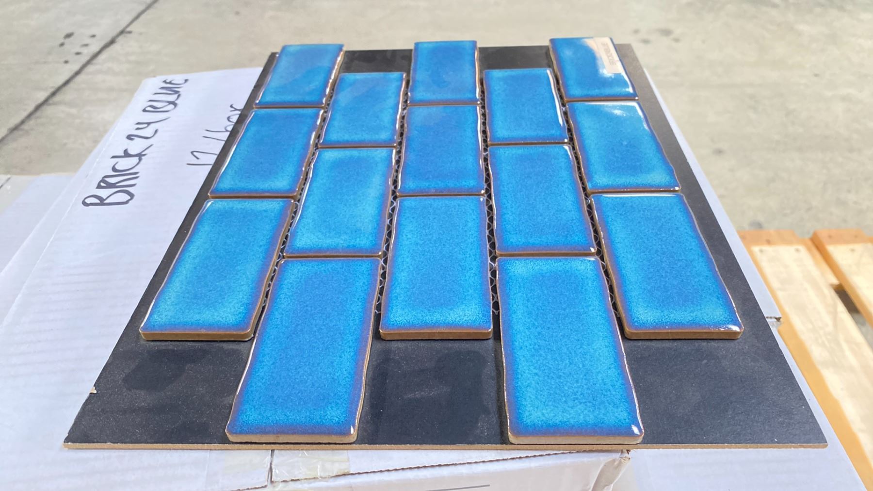 PALLET OF GLOSSY PORCELAIN MOSAIC TILES; APPROX 120SQ.FT. GREY & APPROX 288SQ.FT. BLUE