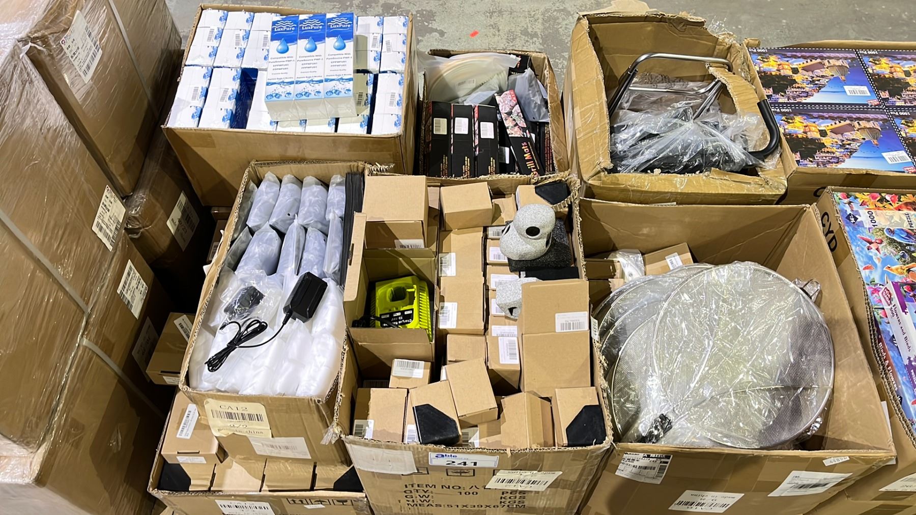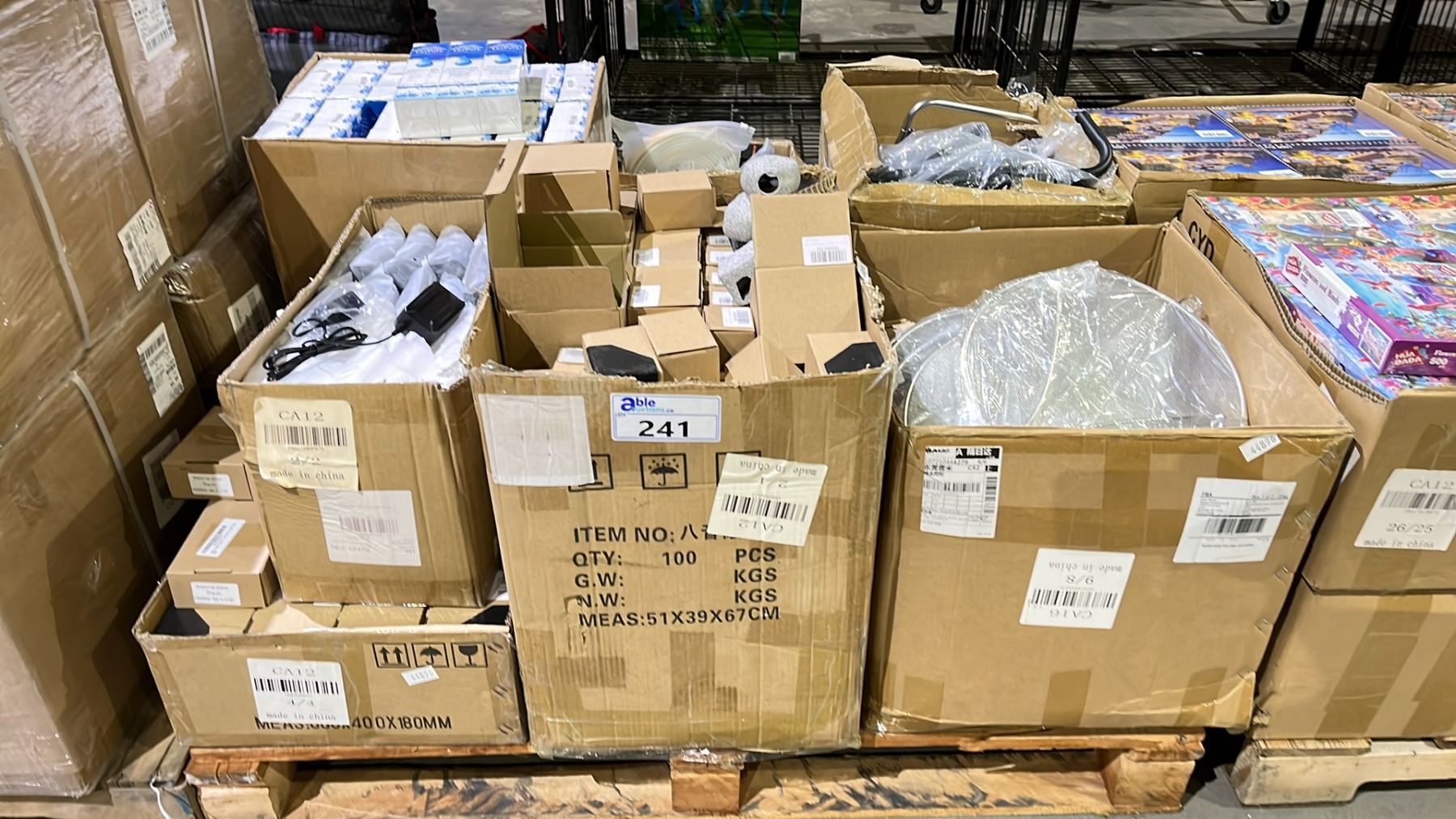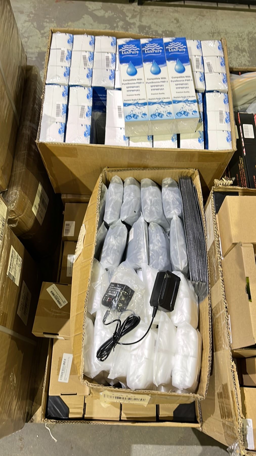 PALLET OF GREASE SPLATTER SCREEN, BBQ GRILL MATS, 12-18VOLT BATTERY CHARGERS, FISH TANK ORNAMENTS