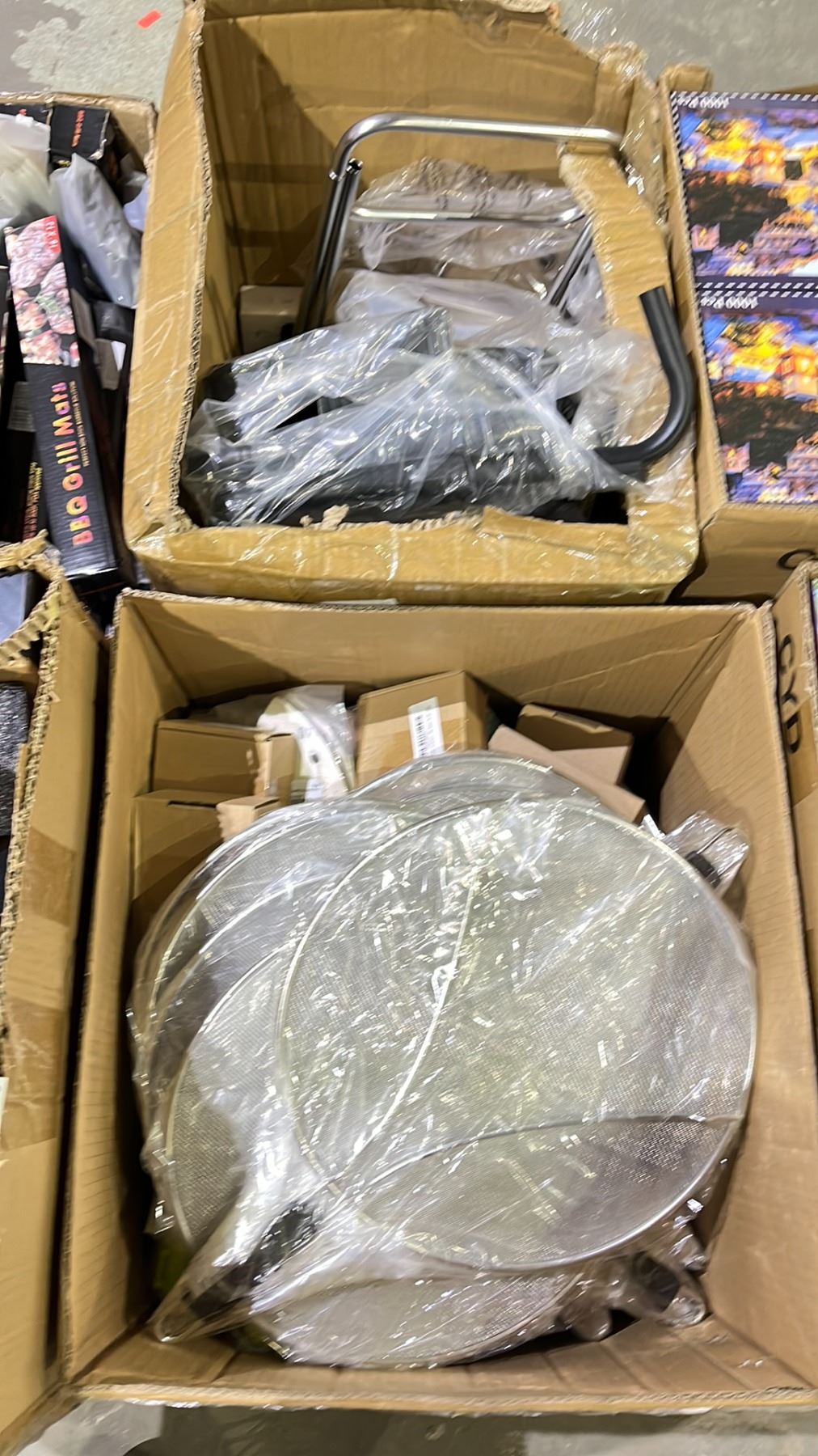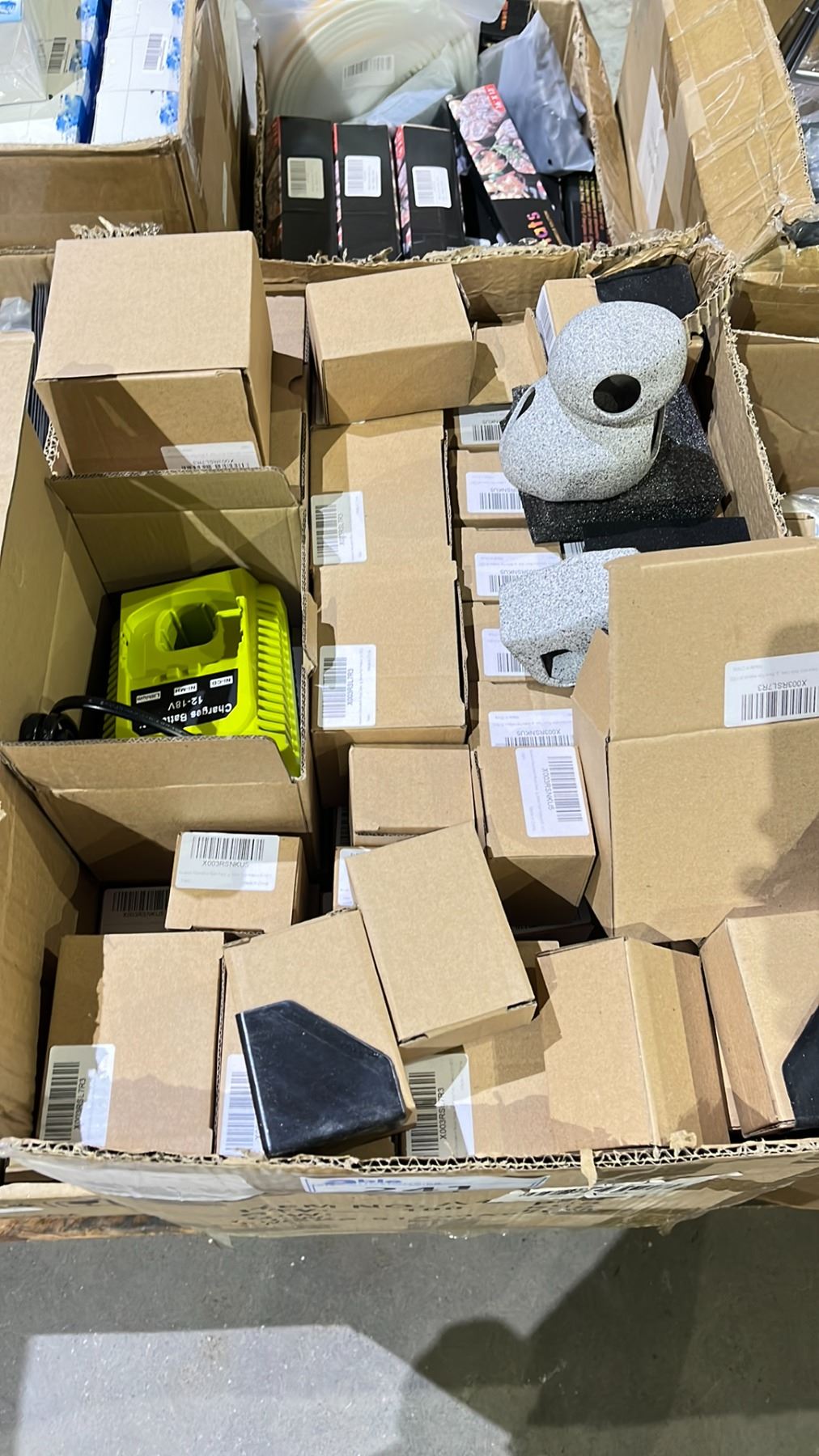 PALLET OF GREASE SPLATTER SCREEN, BBQ GRILL MATS, 12-18VOLT BATTERY CHARGERS, FISH TANK ORNAMENTS AND MORE