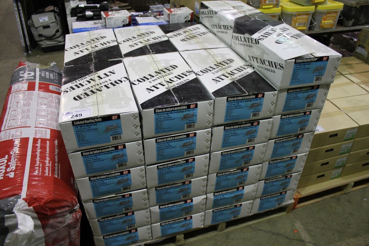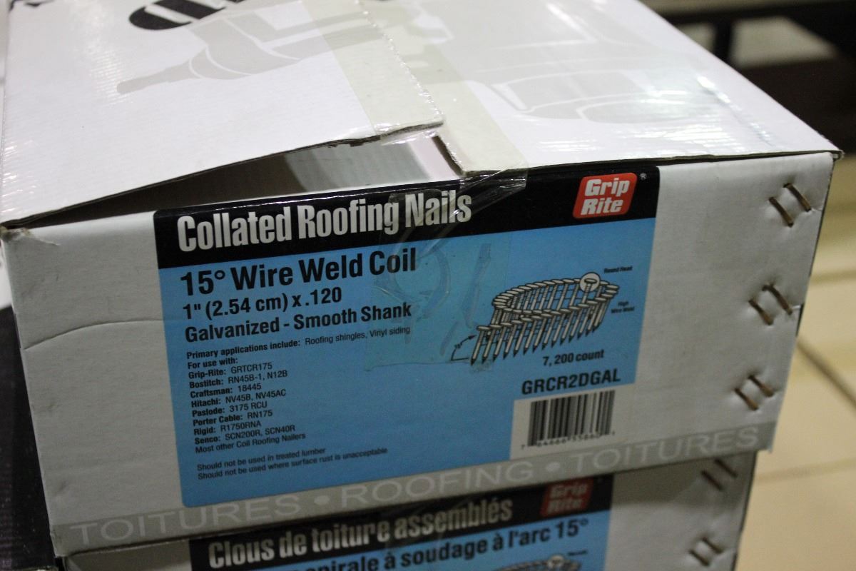 PALLET OF GRIP RITE 15 DEGREE WIRE WELD 1" GALVANIZED SMOOTH SHANK COLLATED FRAMING NAILS (50 BOXES)