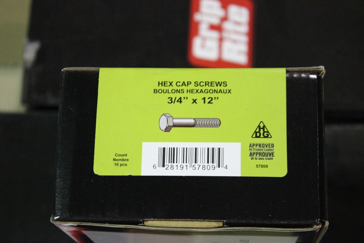 PALLET OF GRIP RITE 3/4 X 12" HEX CAP SCREWS (37 BOXES)