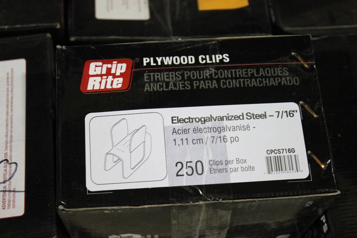 PALLET OF GRIP RITE 7/16" ELECTROGALVANIZED STEEL PLYWOOD CLIPS (90 BOXES)