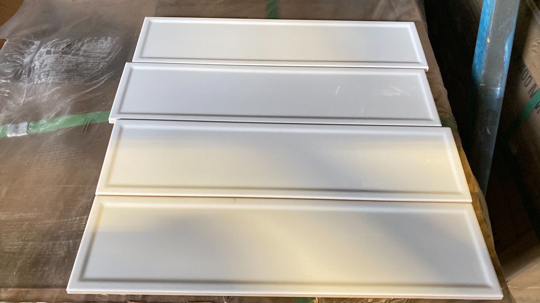 PALLET OF HAMPTON FRAME SNOW 4" X 16" TILE - APPROX. 64 BOXES/38 PCS. PER BOX