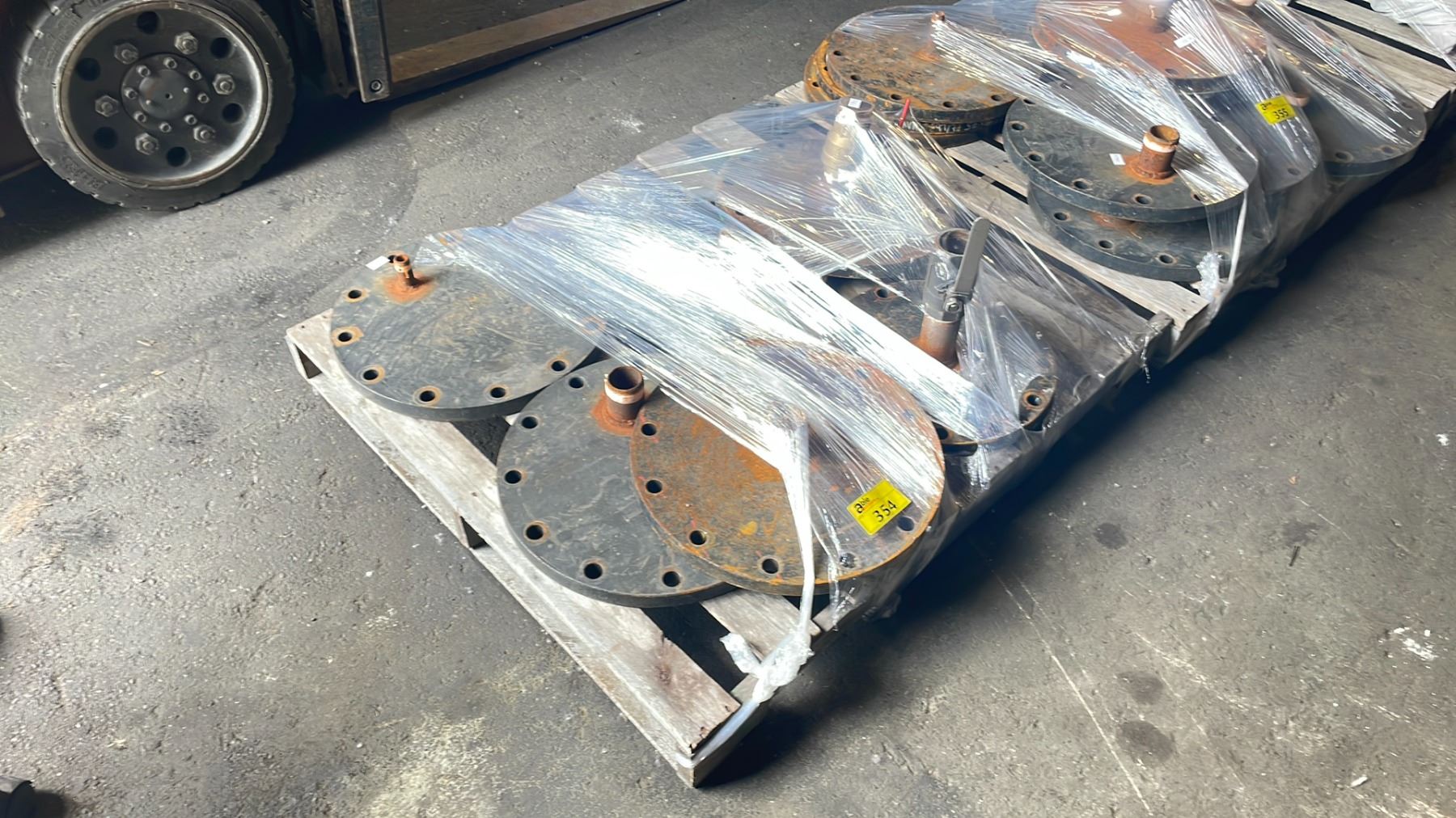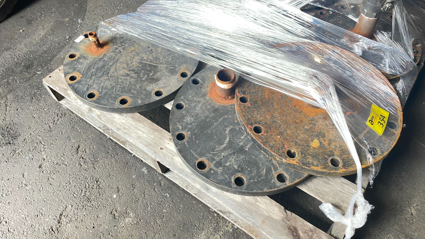 PALLET OF HEAVY DUTY ASSORTED SIZED INDUSTRIAL PLUMBING CAP PLATES