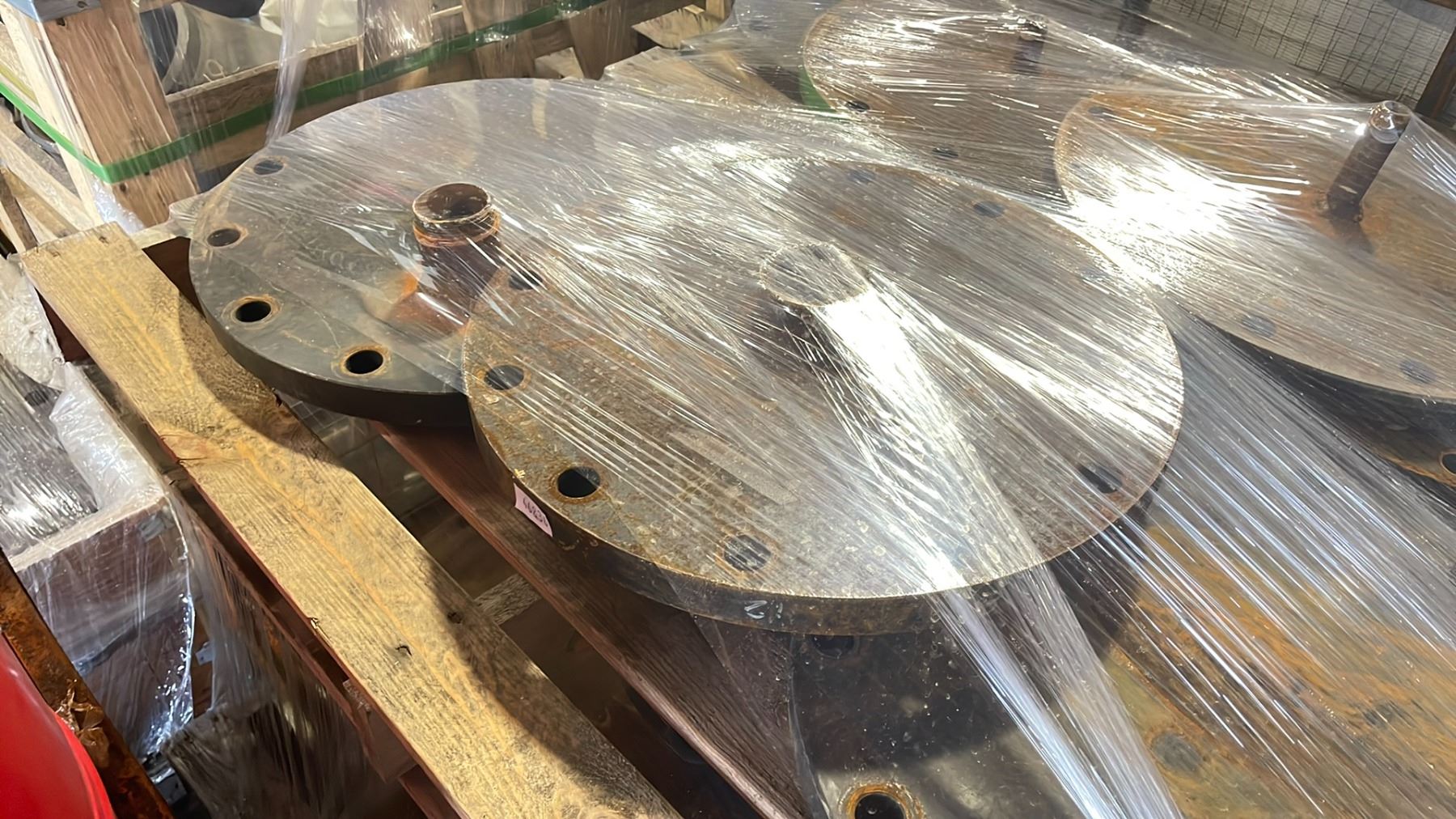 PALLET OF HEAVY DUTY ASSORTED SIZED INDUSTRIAL PLUMBING CAP PLATES