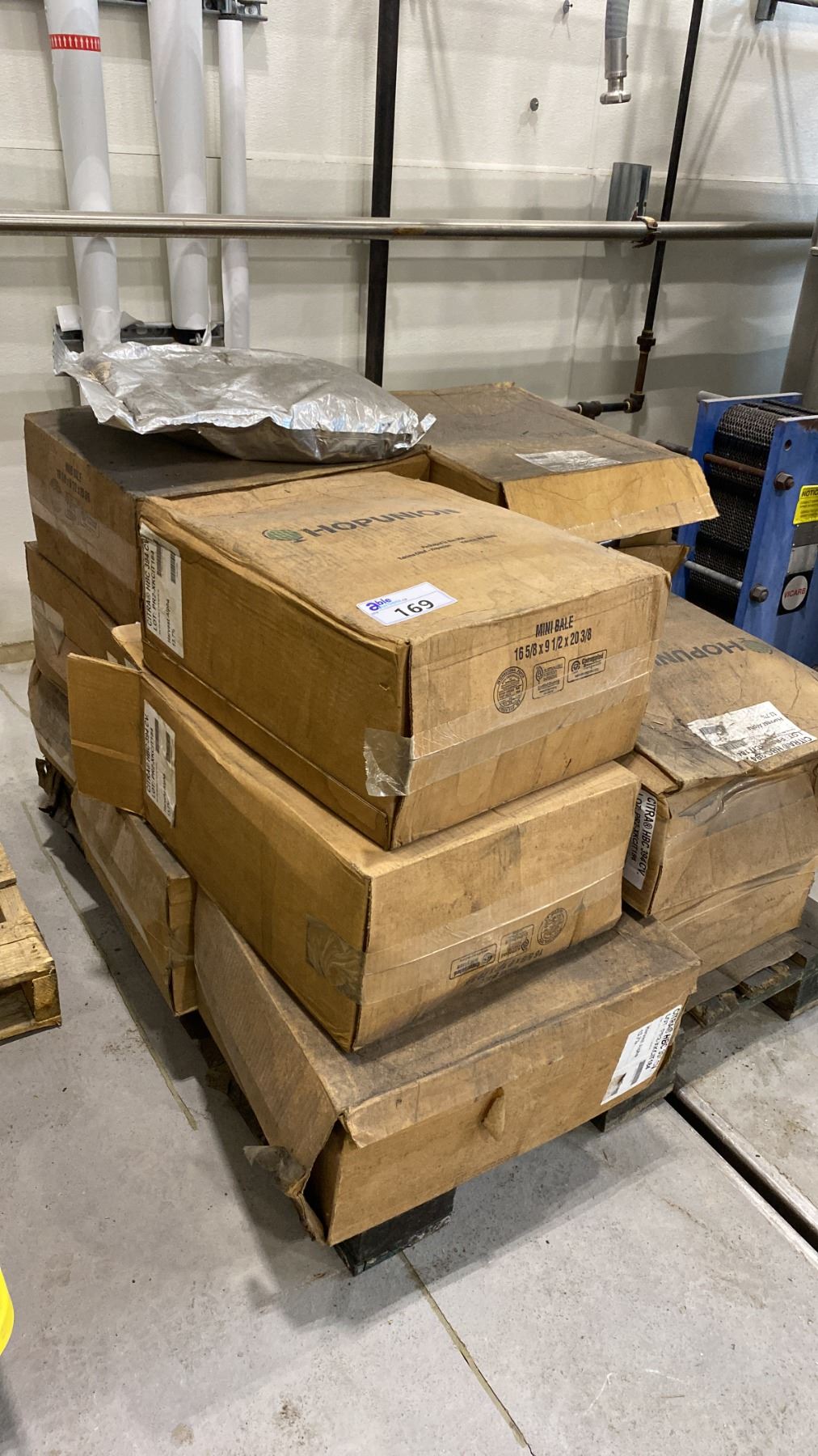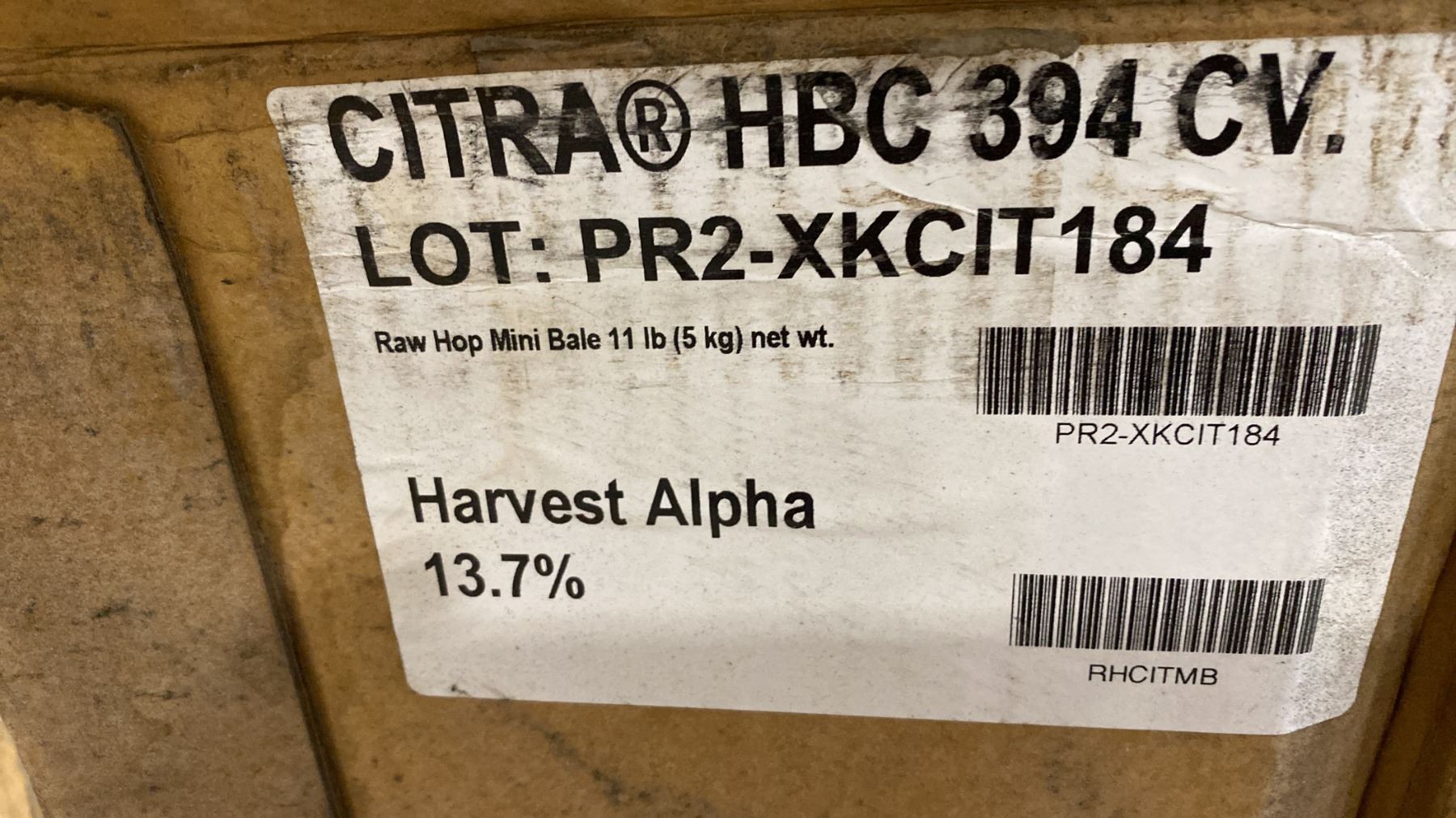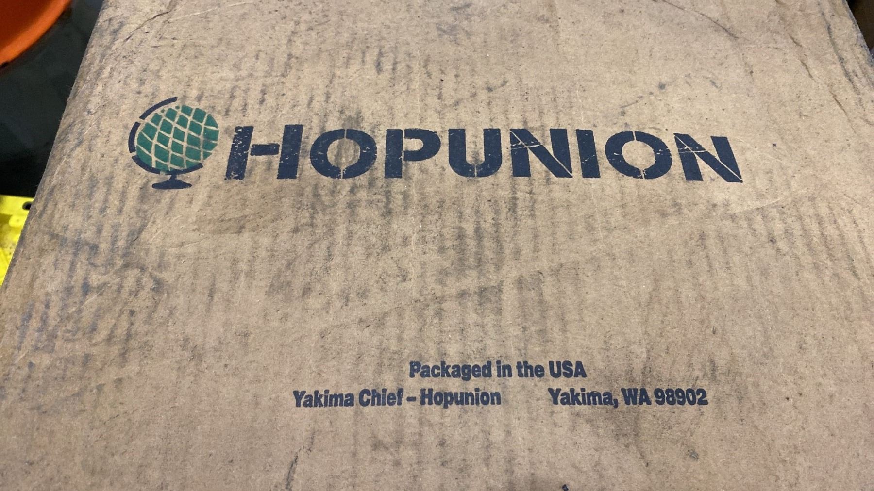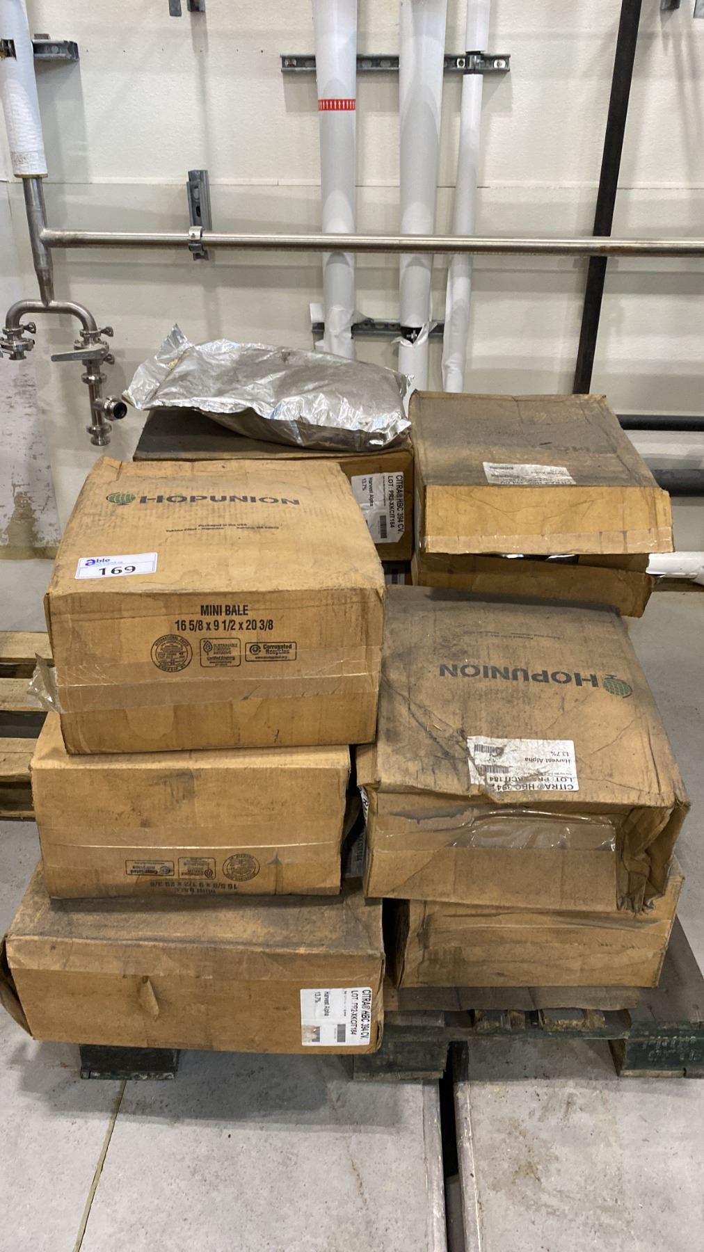 PALLET OF HOPUNION BOXED RAW HOPS MINI BALES - HARVEST ALPHA 13.7% EACH MINI BALE WEIGHS 11 LBS. APPROX. 12 BALES TOTAL