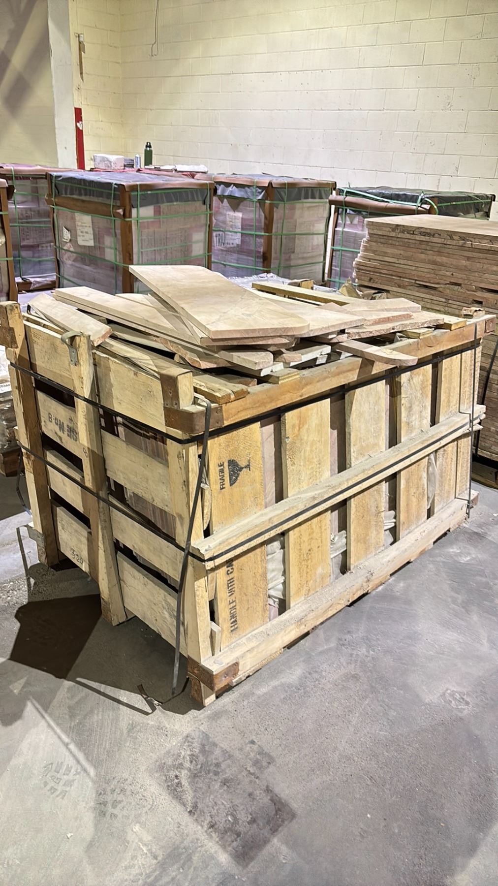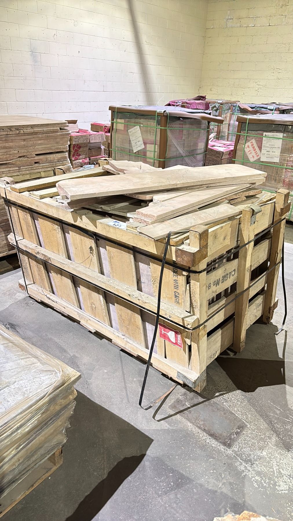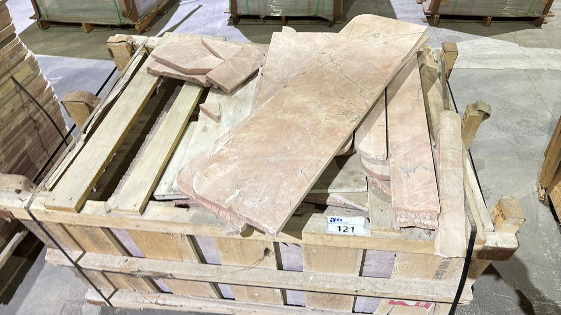 PALLET OF IKAD SUN FLOWER GRANITE SLABS WITH ROUNDED CORNERS APPROX 60 X 30 41 PIECES (SOME BROKEN) & OTHER ASSORTED TILE - OFF SITE PICK UP AT 26251 FRASER HWY