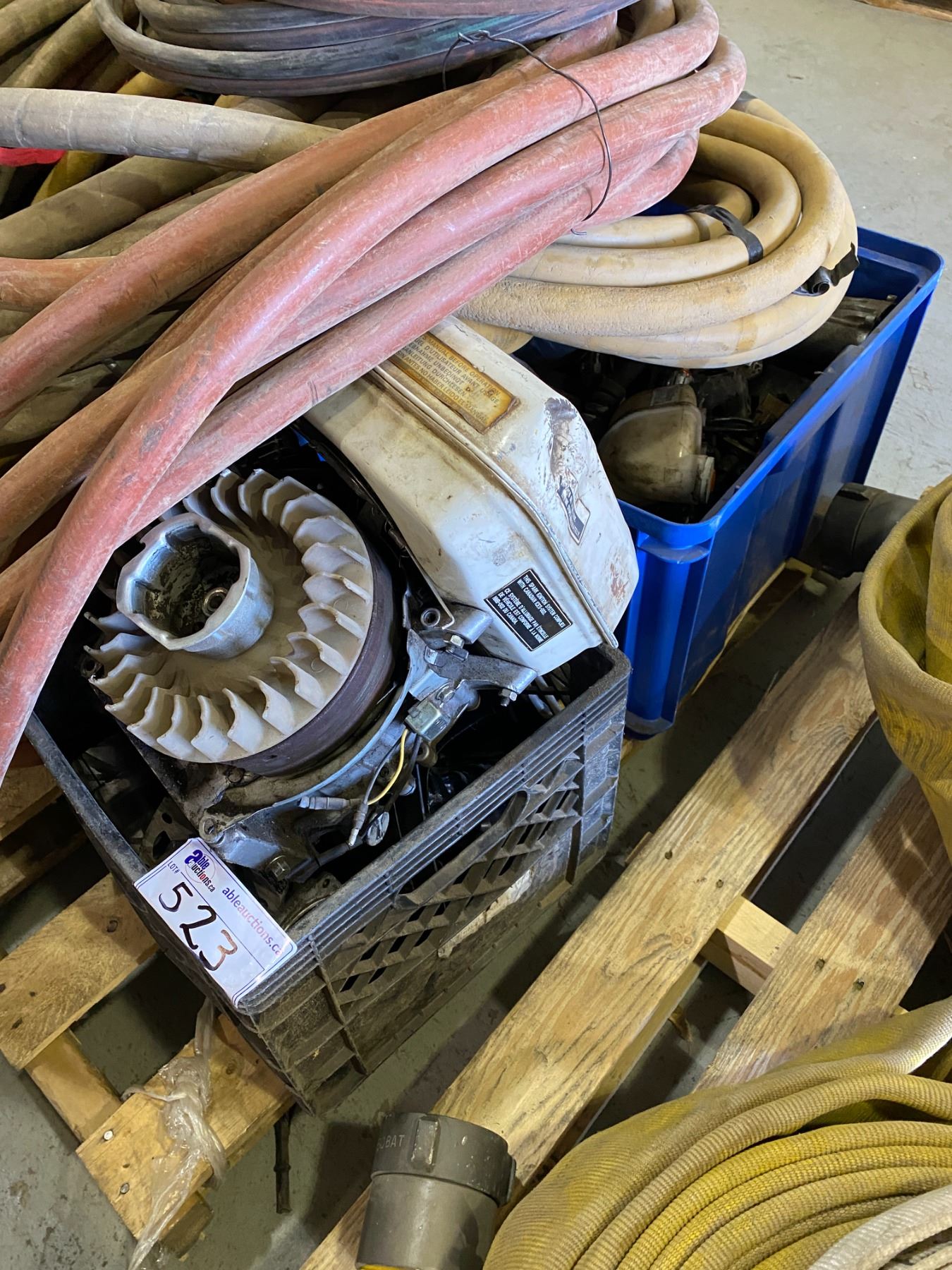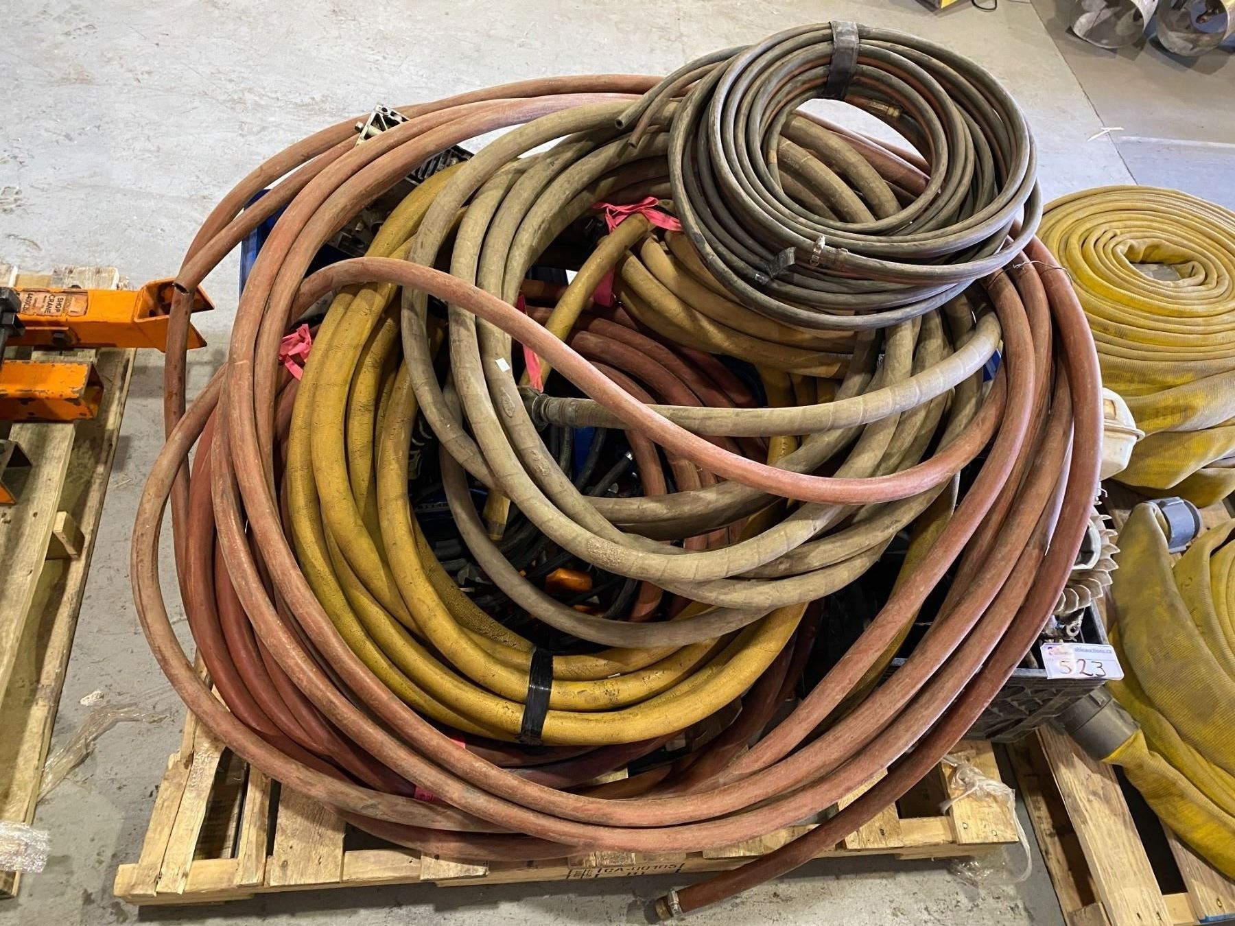PALLET OF INDUSTRIAL AIRLINE, OXY/ACET HOSE AND BOXES OF VARIOUS MOTORS & PARTS