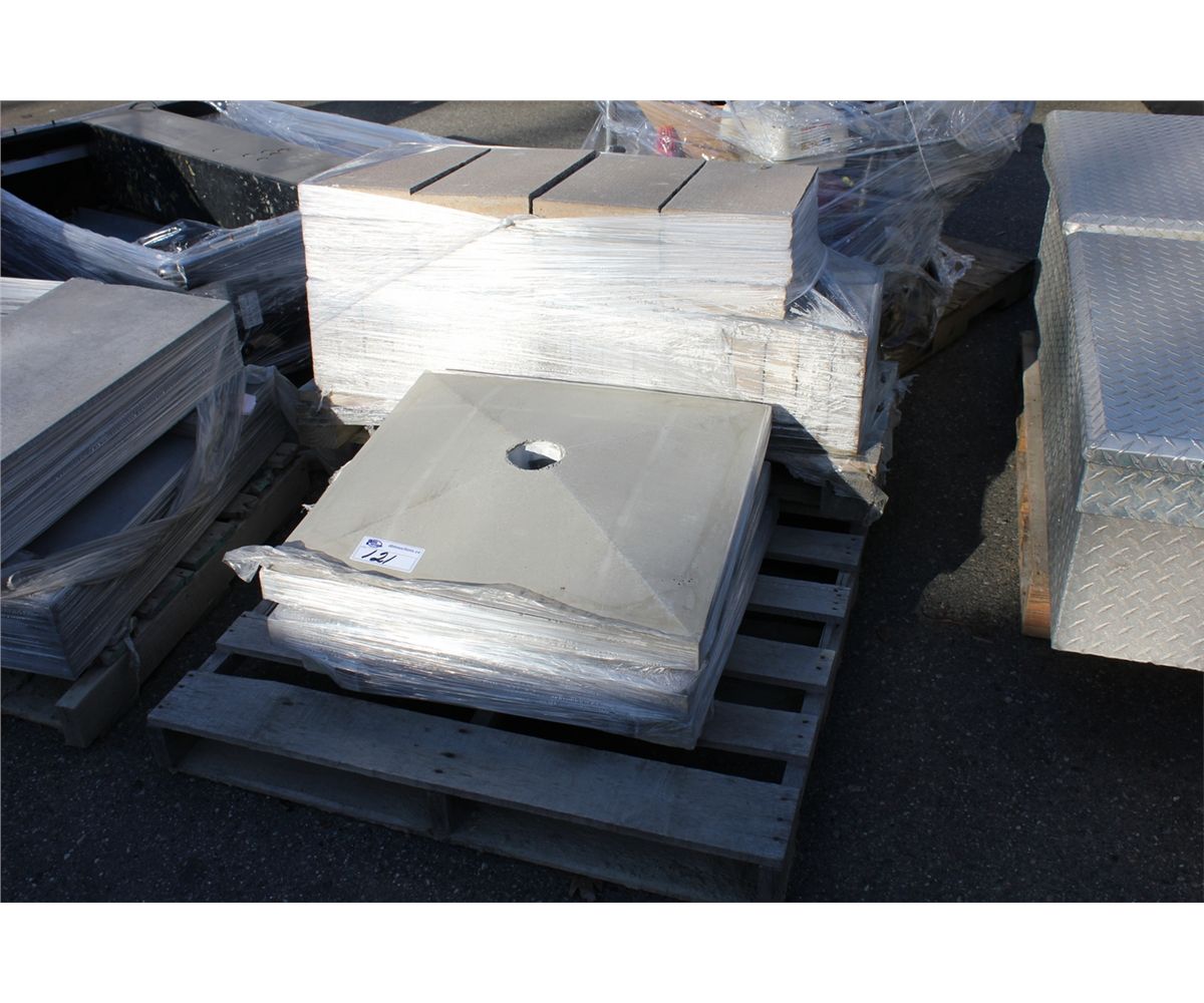 PALLET OF LARGE GREY PILLAR CAPS AND LANDSCAPE BLOCKS