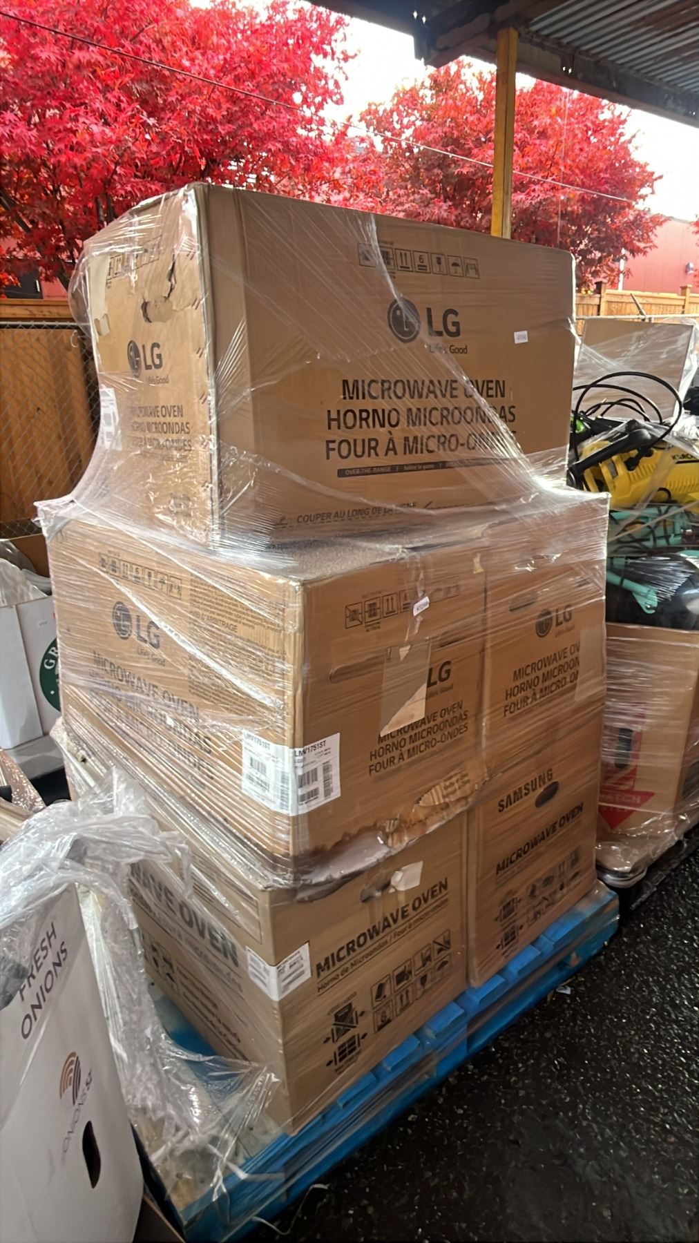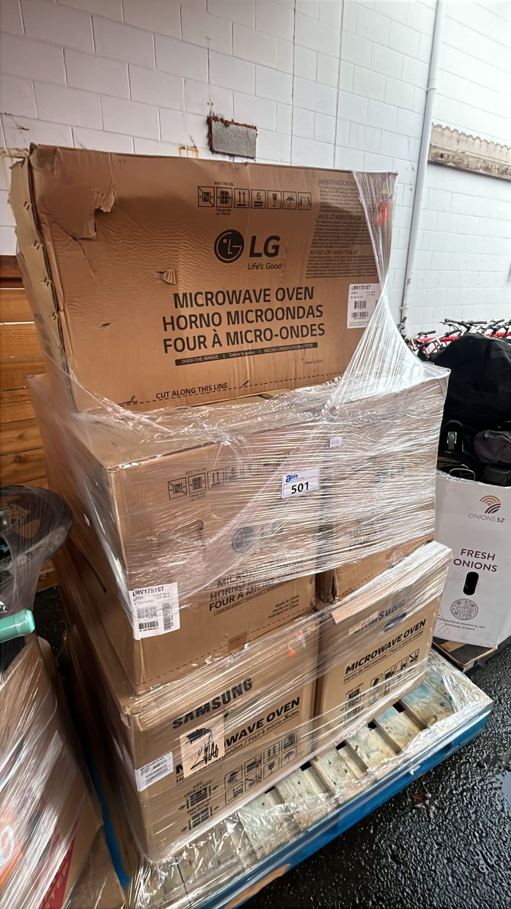 PALLET OF LG & SAMSUNG MICROWAVE OVENS *WORKING CONDITION UNKNOWN/MAY BE MISSING PARTS AND OR PIECES/MUST TAKE ALL ON PALLET*