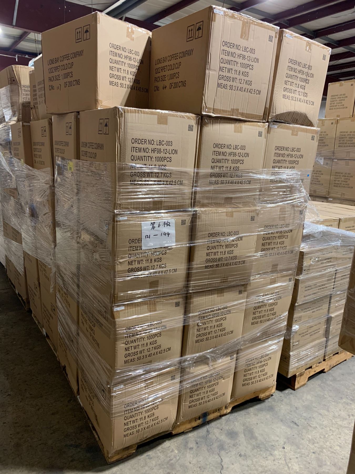 PALLET OF LIONS BAY COFFEE COMPANY 12OZ RPET COLD CUPS ( 1000 PIECES PER BOX )