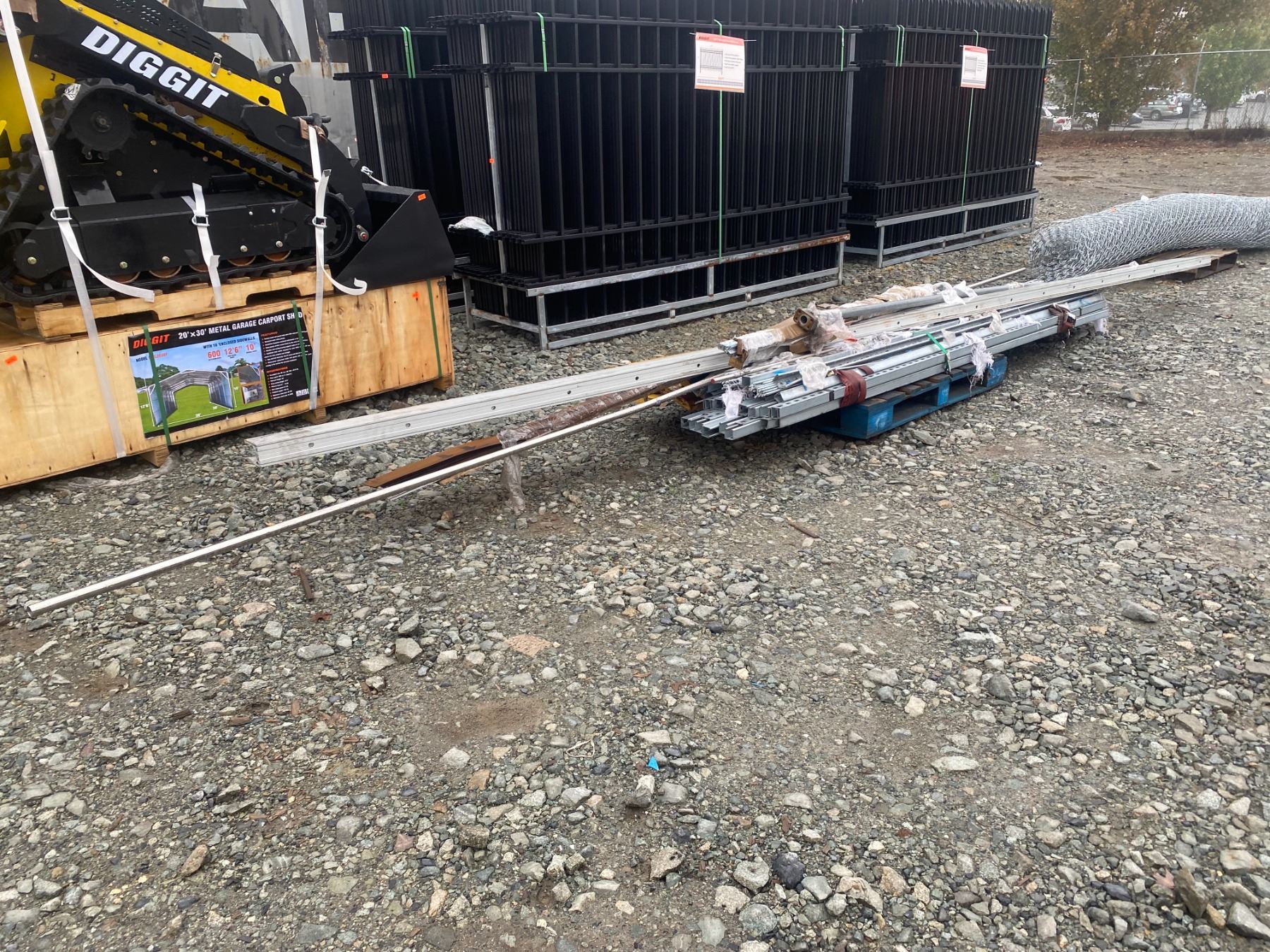 PALLET OF METAL BRACKETS AND PIPES, CAT GRADER ATTACHMENTS AND MORE