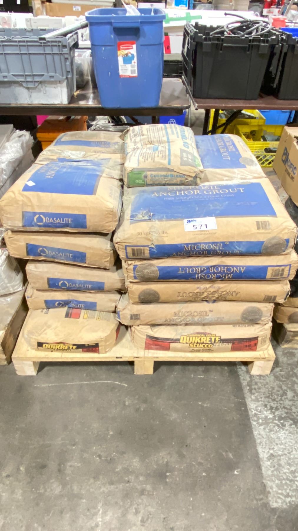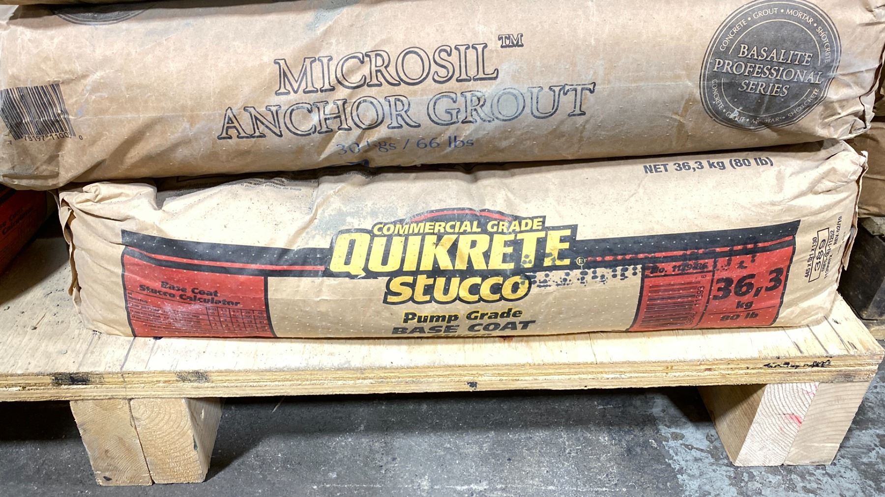 PALLET OF MICROSIL ANCHOR GROUT BAGS & BAGS QUIKCRETE STUCCO *MUST TAKE ALL ON PALLET*
