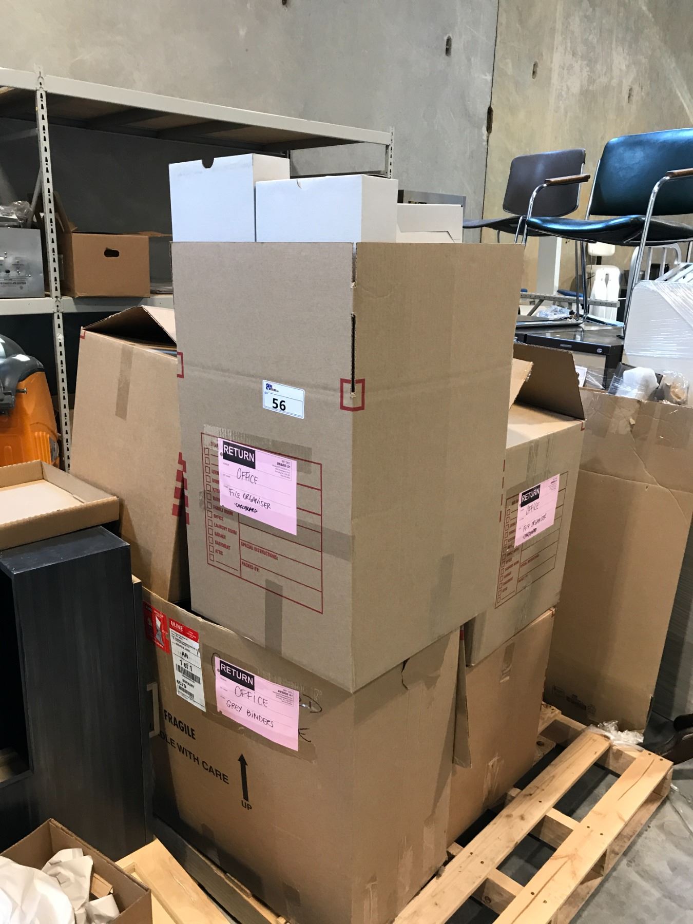 PALLET OF MISC. OFFICE SUPPLIES INCLUDING ORGANIZERS, BINDERS AND MORE