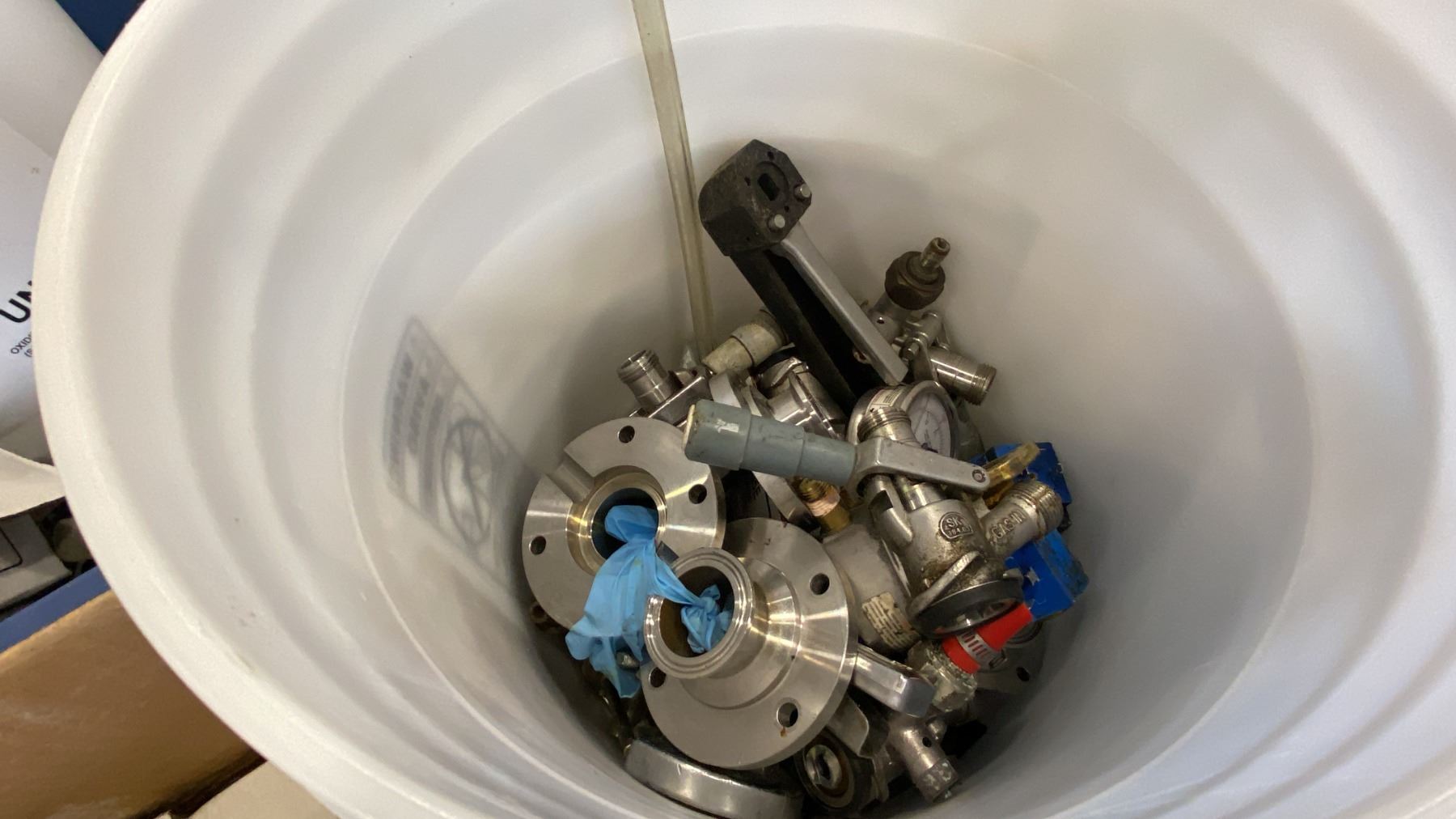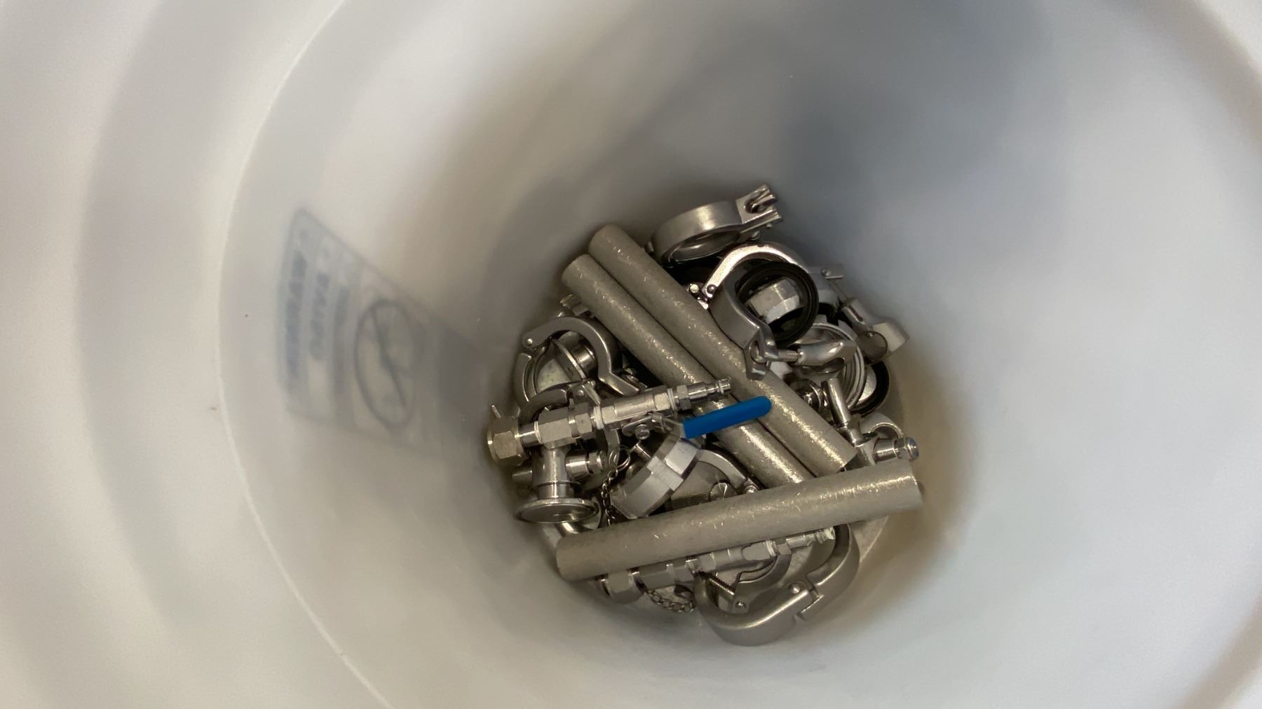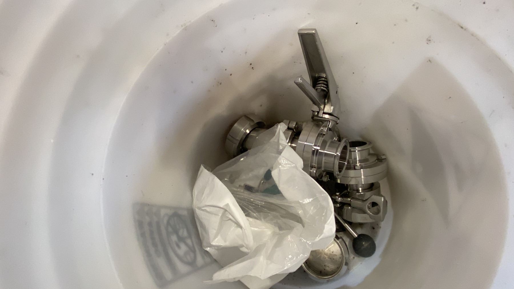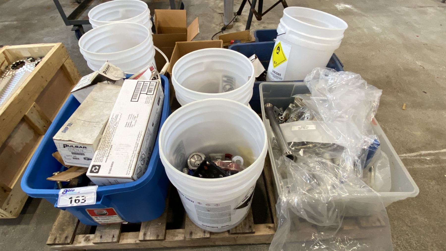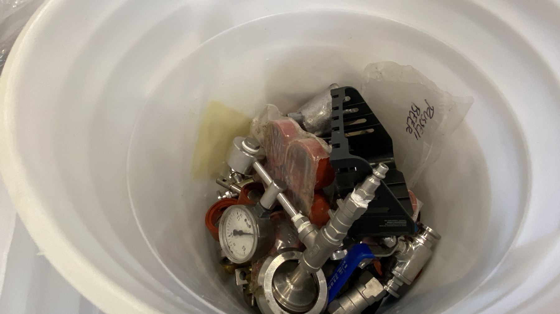 PALLET OF MIXED ITEMS INCL TRI-CLAMP FITTINGS, GAUGES, SHUTOFF VALVES, SANITARY FITTINGS AND MORE