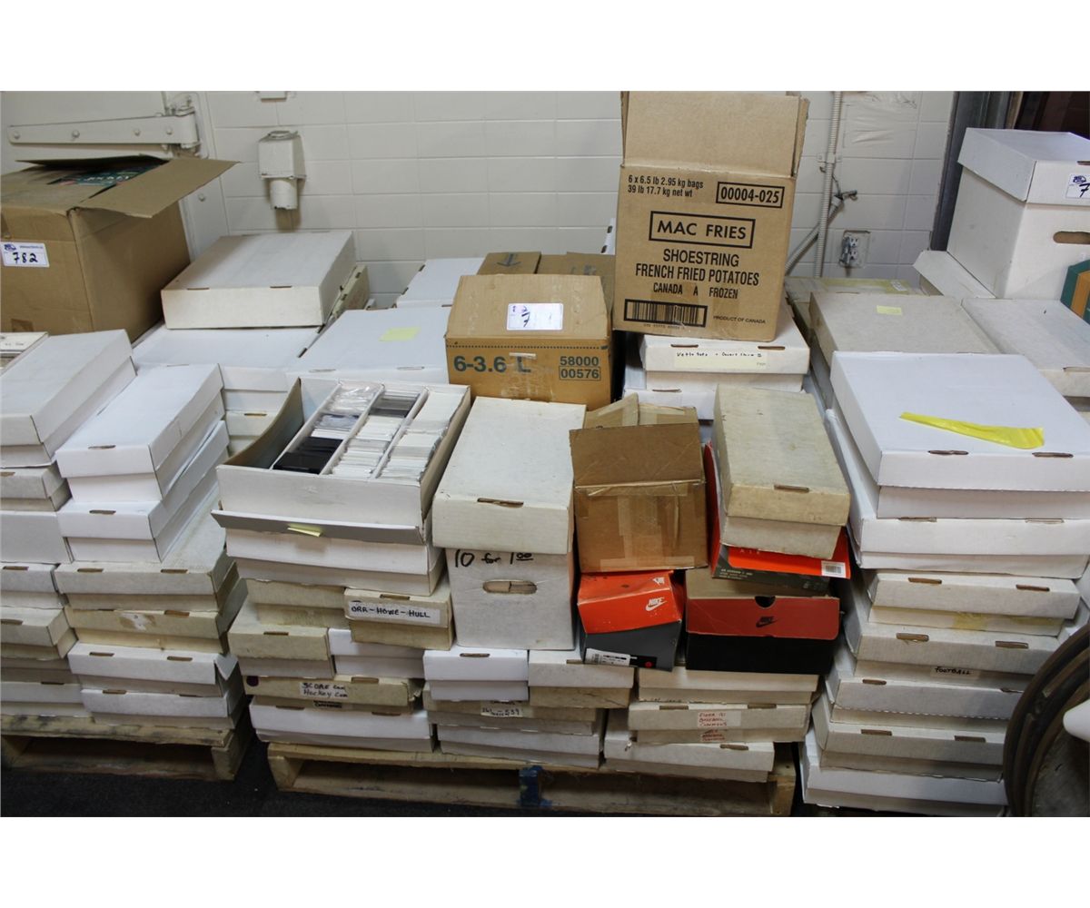 PALLET OF MOSTLY ASSORTED 1990'S-2000'S SPORTSCARDS. MAY CONTAIN ASSORTED COLLECTIBLES, AND NON