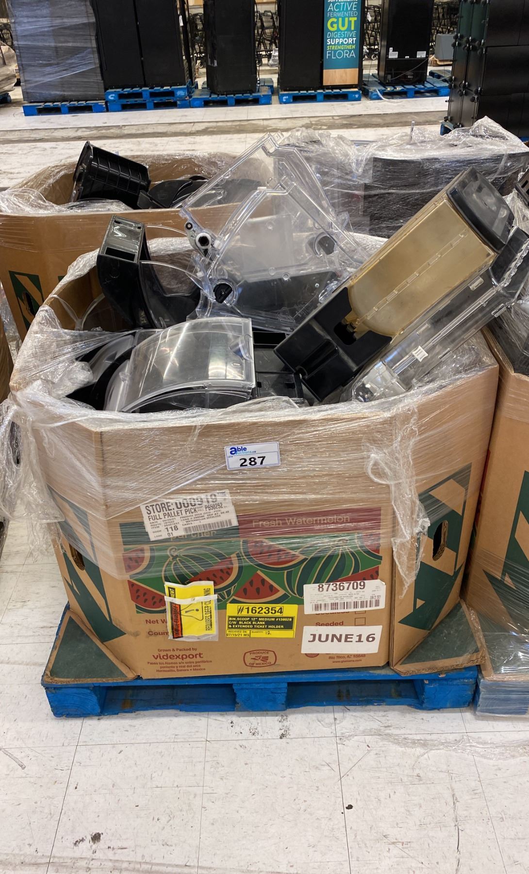PALLET OF PLASTIC COMMERCIAL GRAVITY FED BULK BINS