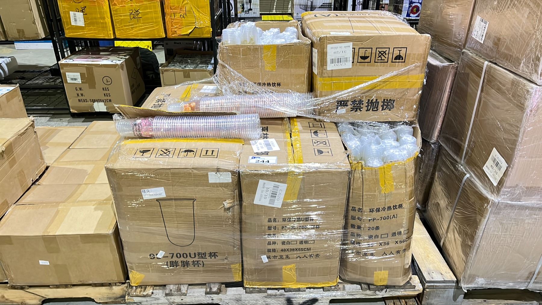 PALLET OF PLASTIC DISPOSABLE CUPS