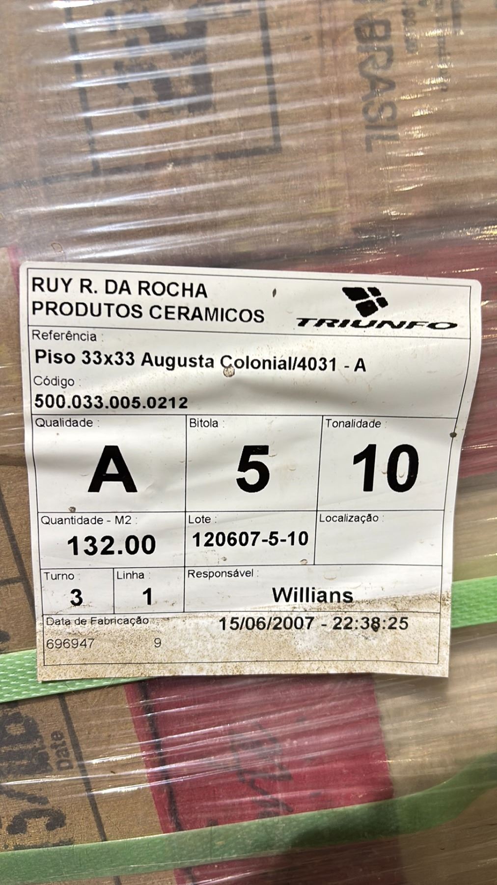 PALLET OF ROCHA CERAMICS PISO 33CM X 33CM AUGUSTA COLONIAL/4031-A CERAMIC TILE FLOORING APPROX 132 SQ. METERS - OFF SITE PICK UP AT 26251 FRASER HWY