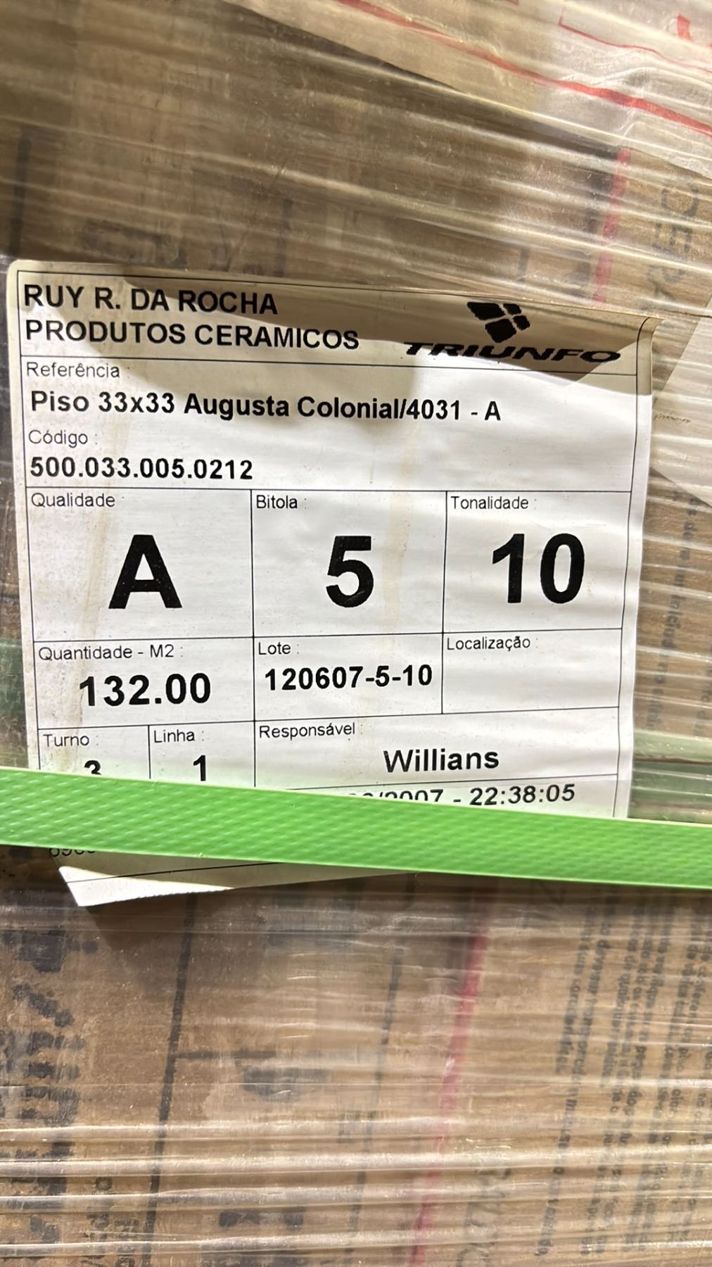 PALLET OF ROCHA CERAMICS PISO 33CM X 33CM AUGUSTA COLONIAL/4031-A CERAMIC TILE FLOORING