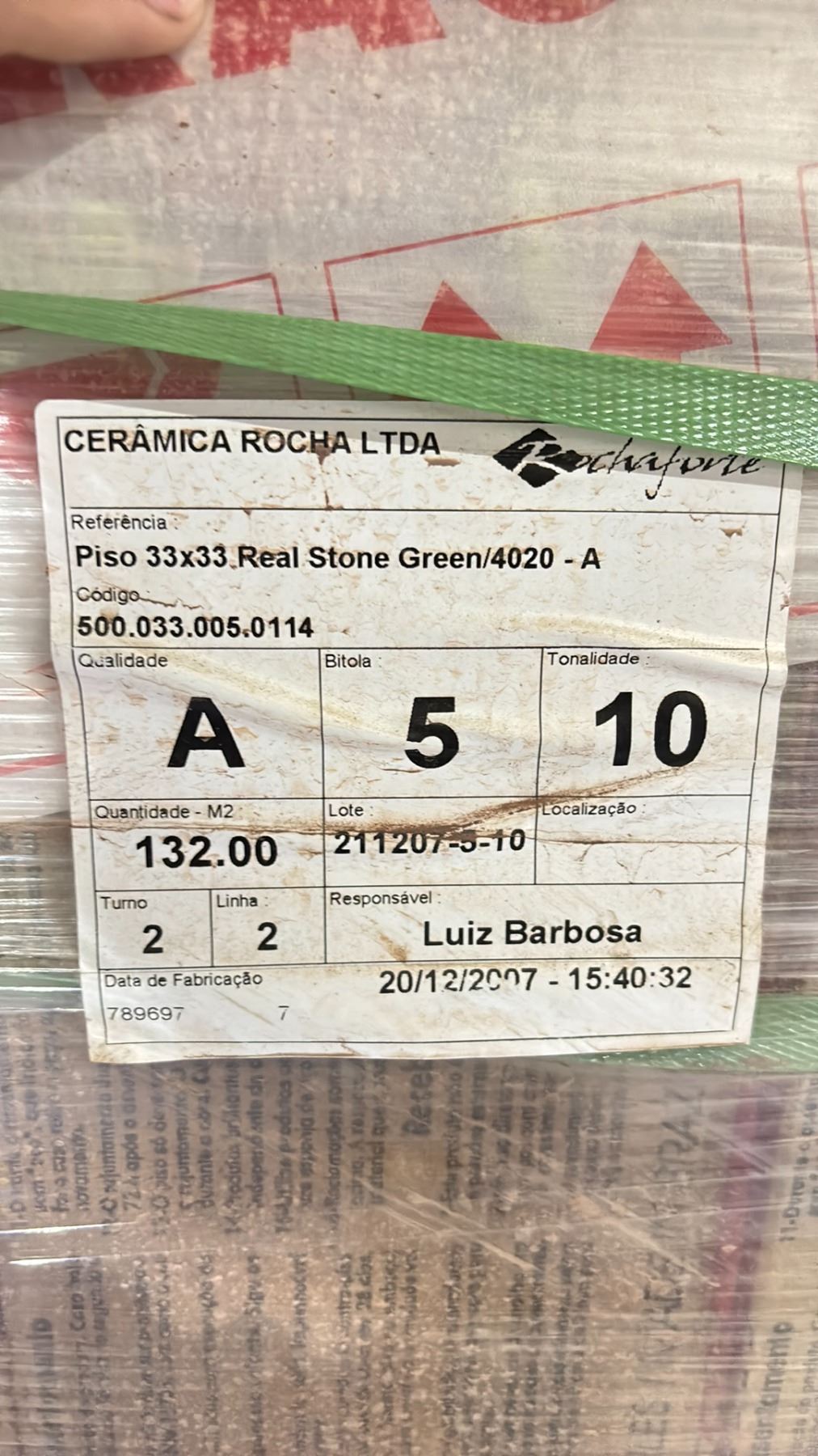 PALLET OF ROCHA CERAMICS PISO 33CM X 33CM REAL STONE GREEN/4020-A CERAMIC TILE FLOORING APPROX 132 SQ. METERS - OFF SITE PICK UP AT 26251 FRASER HWY