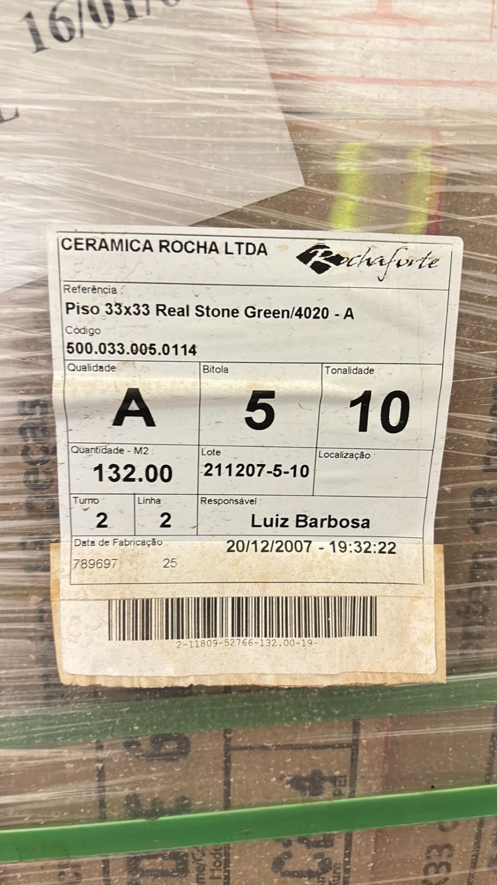 PALLET OF ROCHA CERAMICS PISO 33CM X 33CM REAL STONE GREEN/4020-A CERAMIC TILE FLOORING