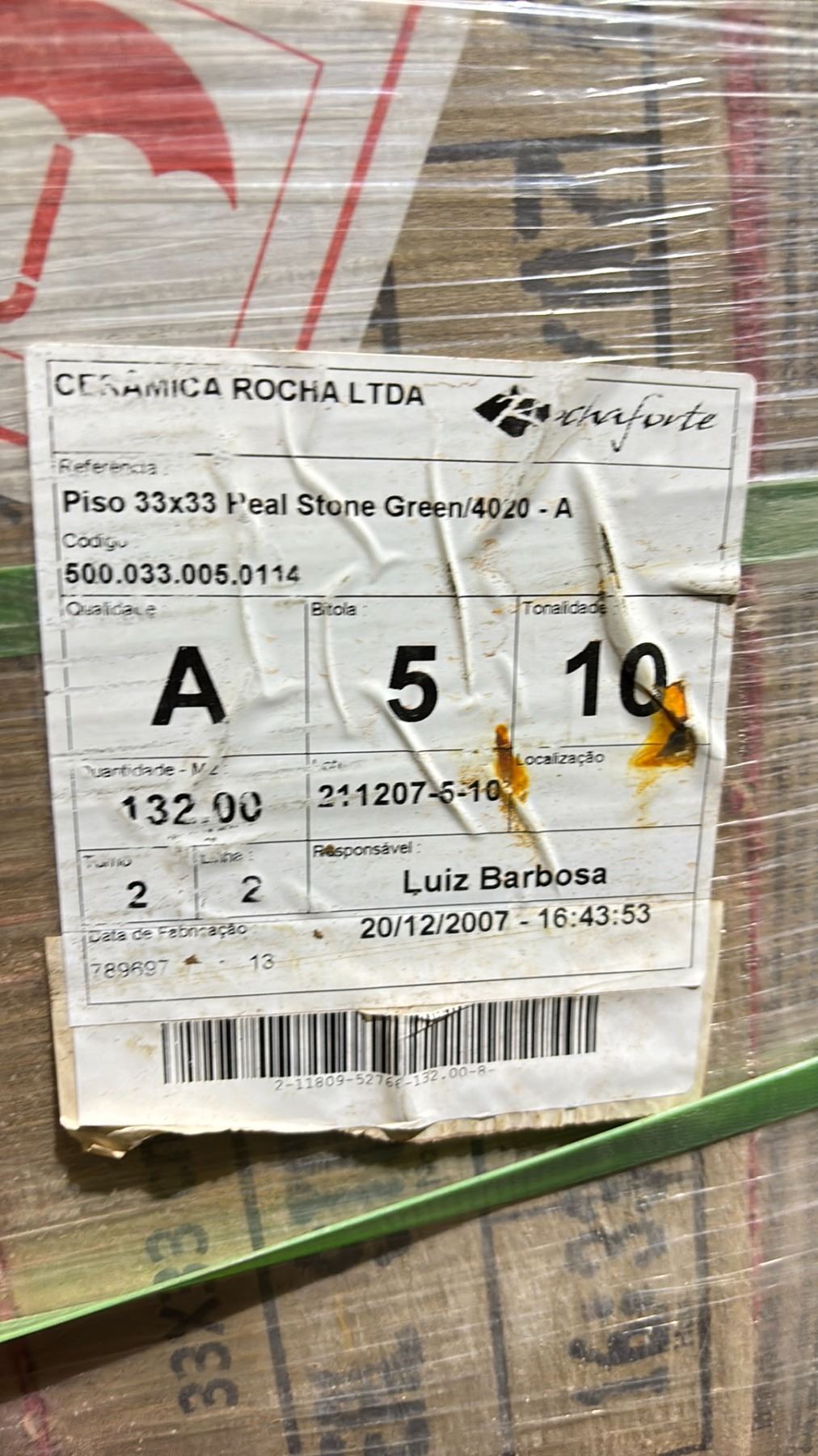 PALLET OF ROCHA CERAMICS PISO 33CM X 33CM REAL STONE GREEN/4020-A CERAMIC TILE FLOORING APPROX 132 SQ. METERS - OFF SITE PICK UP AT 26251 FRASER HWY