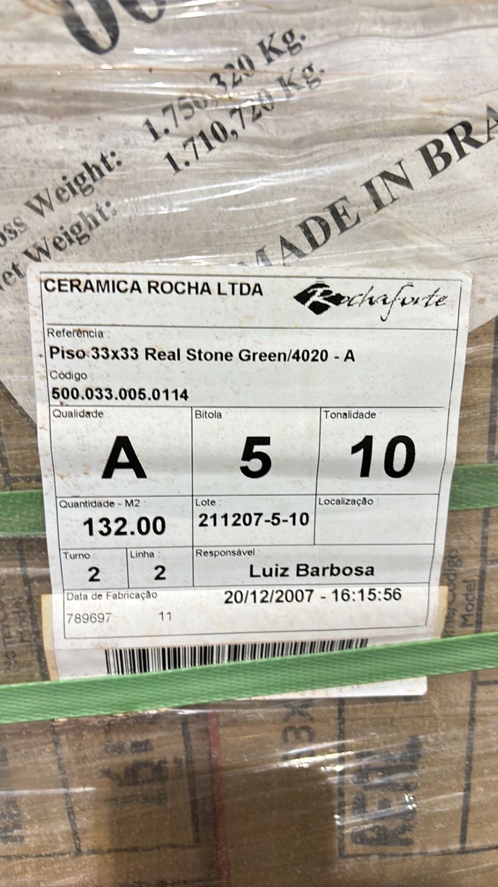 PALLET OF ROCHA CERAMICS PISO 33CM X 33CM REAL STONE GREEN/4020-A CERAMIC TILE FLOORING