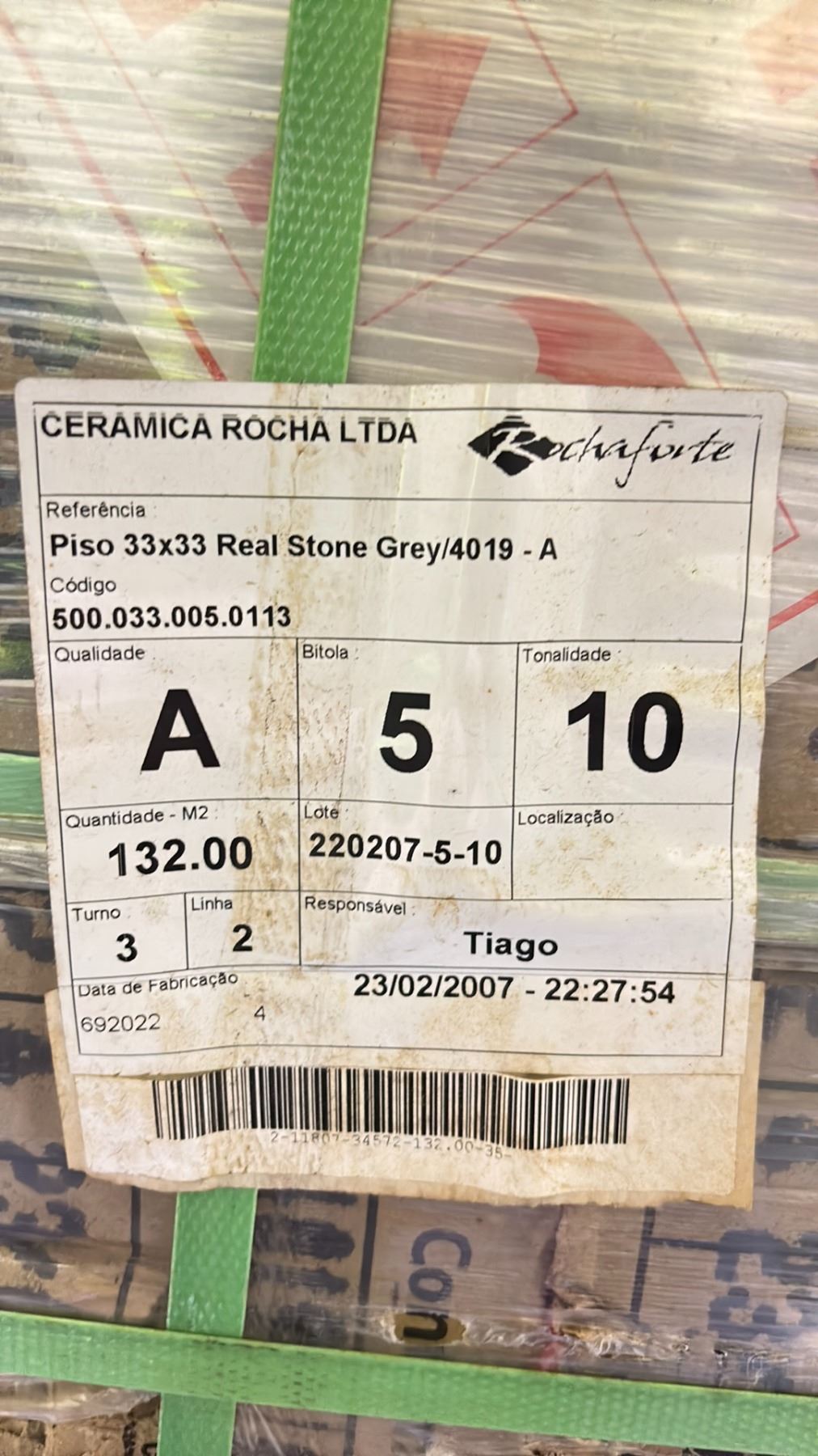 PALLET OF ROCHA CERAMICS PISO 33CM X 33CM REAL STONE GREY/4019- A CERAMIC TILE FLOORING APPROX 132 SQ. METERS - OFF SITE PICK UP AT 26251 FRASER HWY
