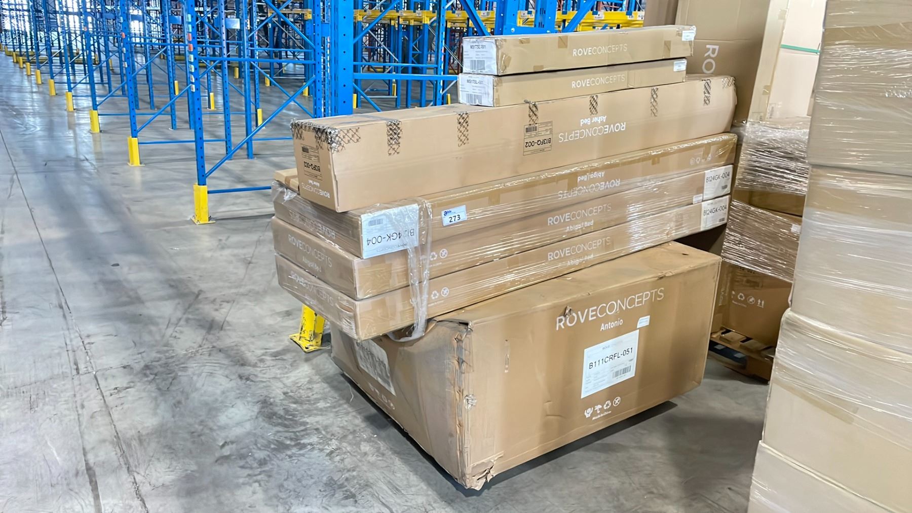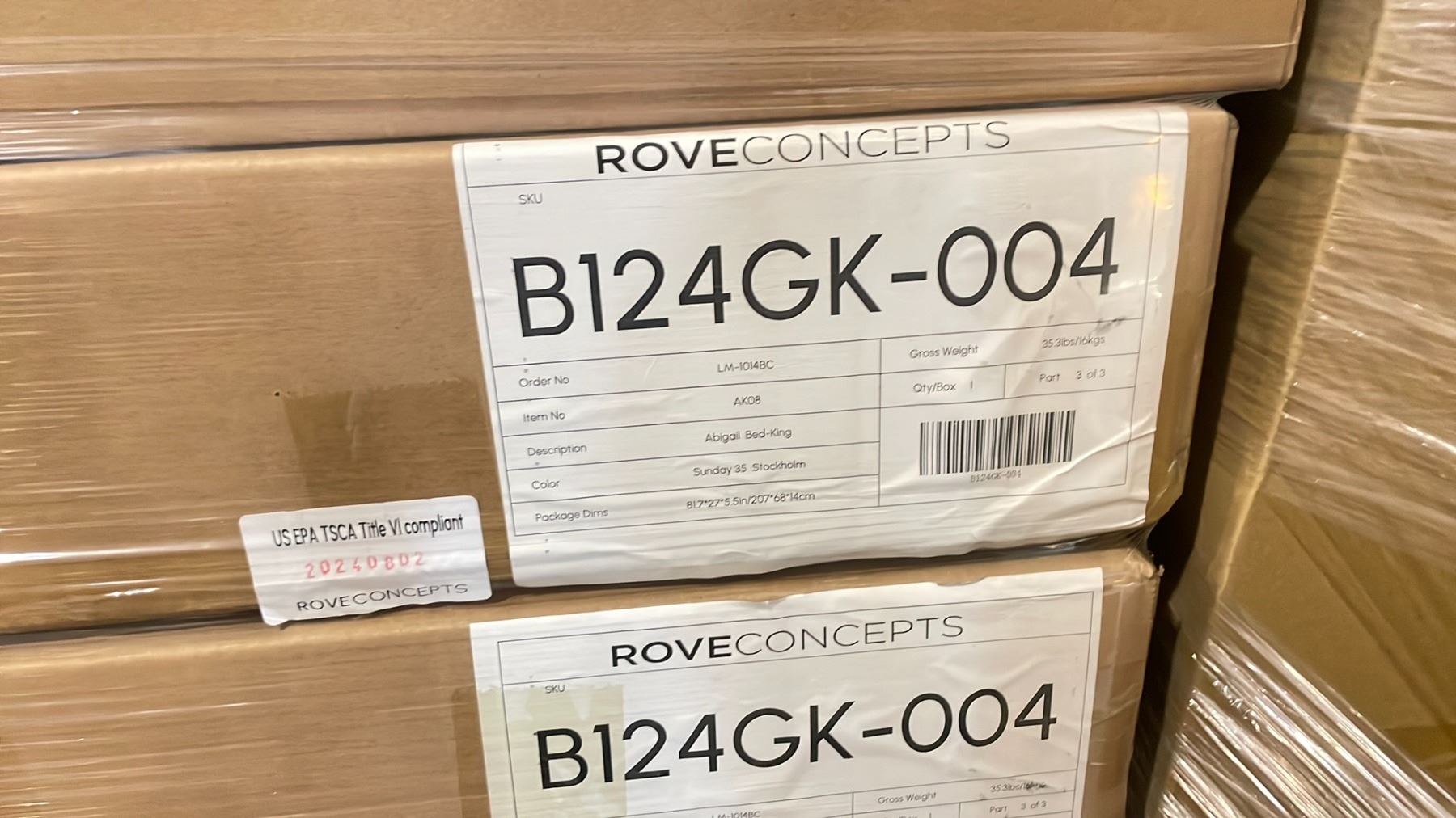 PALLET OF ROVE CONCEPTS DESIGNER ASSORTED ABIGAIL BED PARTS & SECTIONAL SECTION *IN BOX* *MUST TAKE ALL ON PALLET*