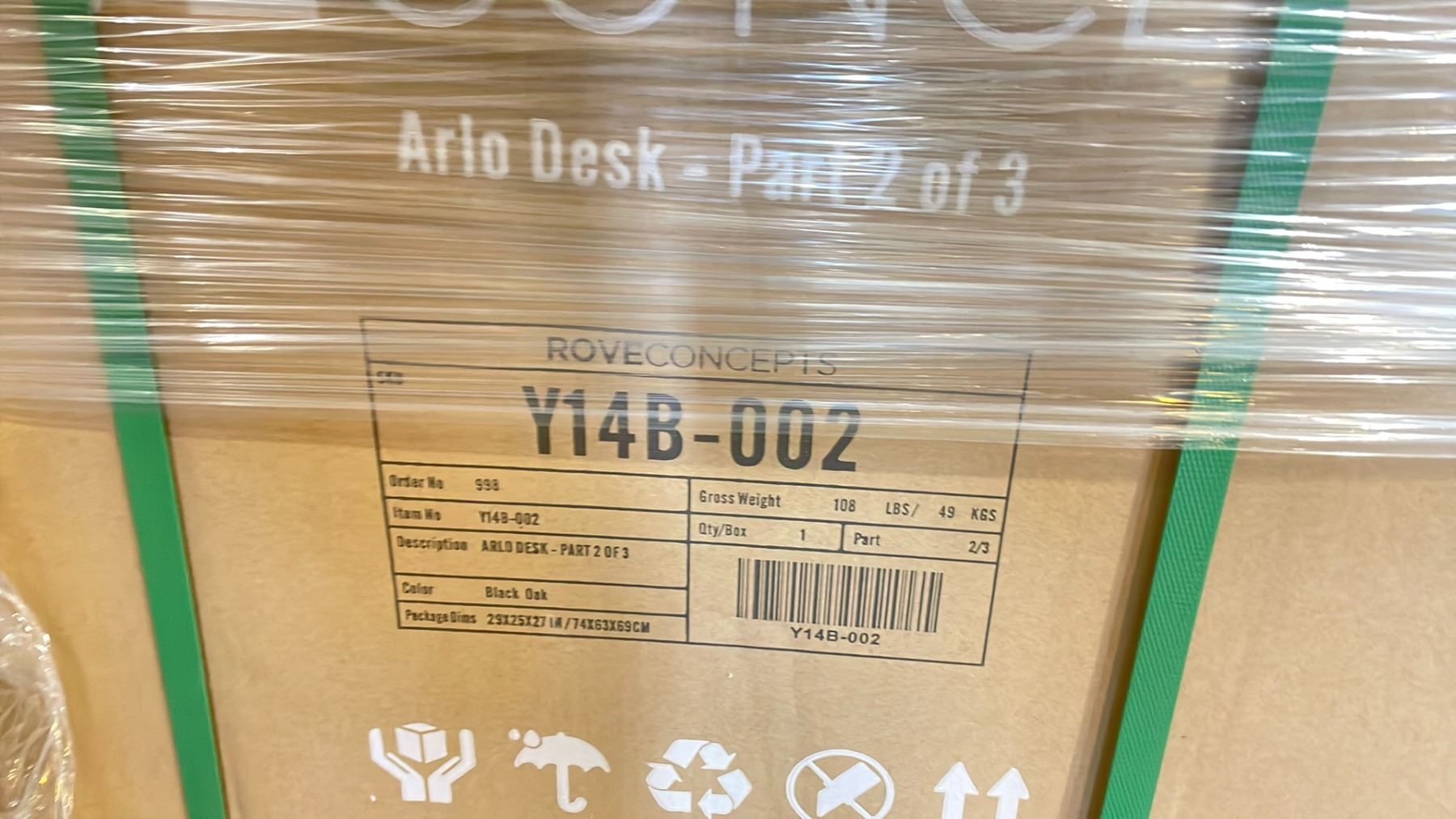 PALLET OF ROVE CONCEPTS DESIGNER ASSORTED ARLO DESK PARTS & SHELVING UNIT *IN BOX* *MUST TAKE ALL ON PALLET*