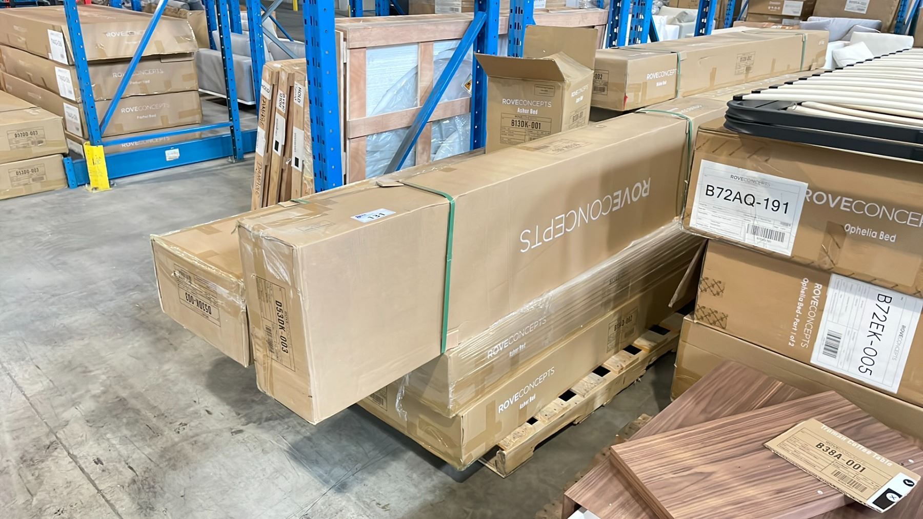 PALLET OF ROVE CONCEPTS DESIGNER ASSORTED ASHER, MIKKEL, BED PARTS *IN BOX* *MUST TAKE ALL ON PALLET*