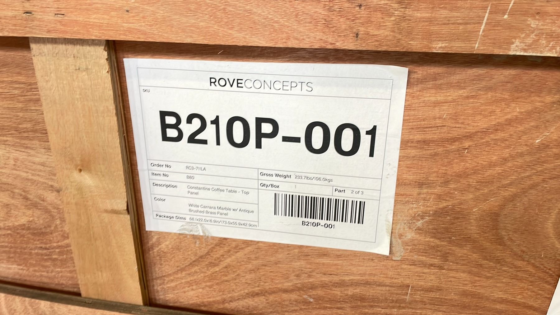 PALLET OF ROVE CONCEPTS DESIGNER ASSORTED COFFEE TABLE TOP PARTS & TABLE TOP *IN BOX* *MUST TAKE ALL ON PALLET*