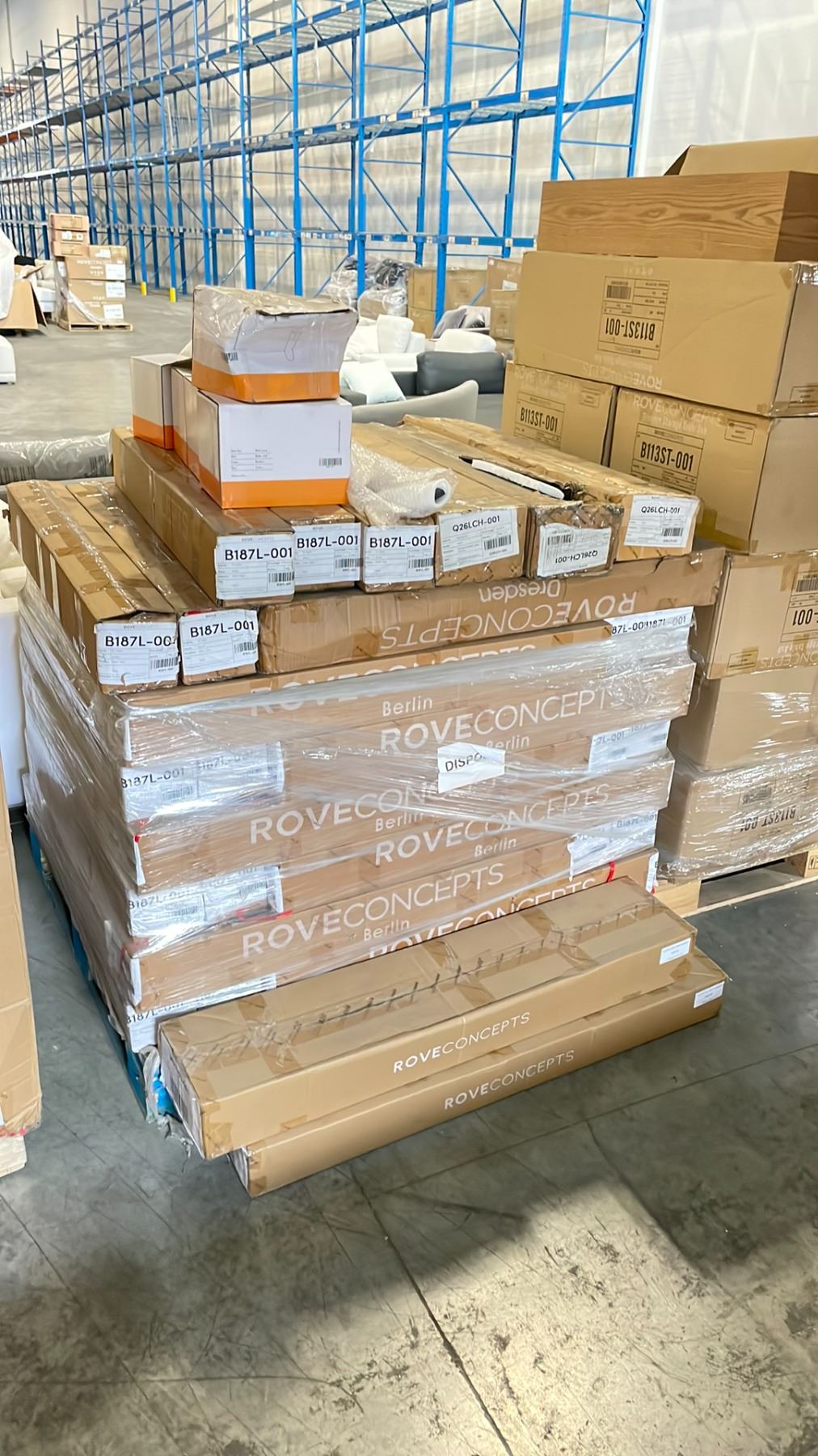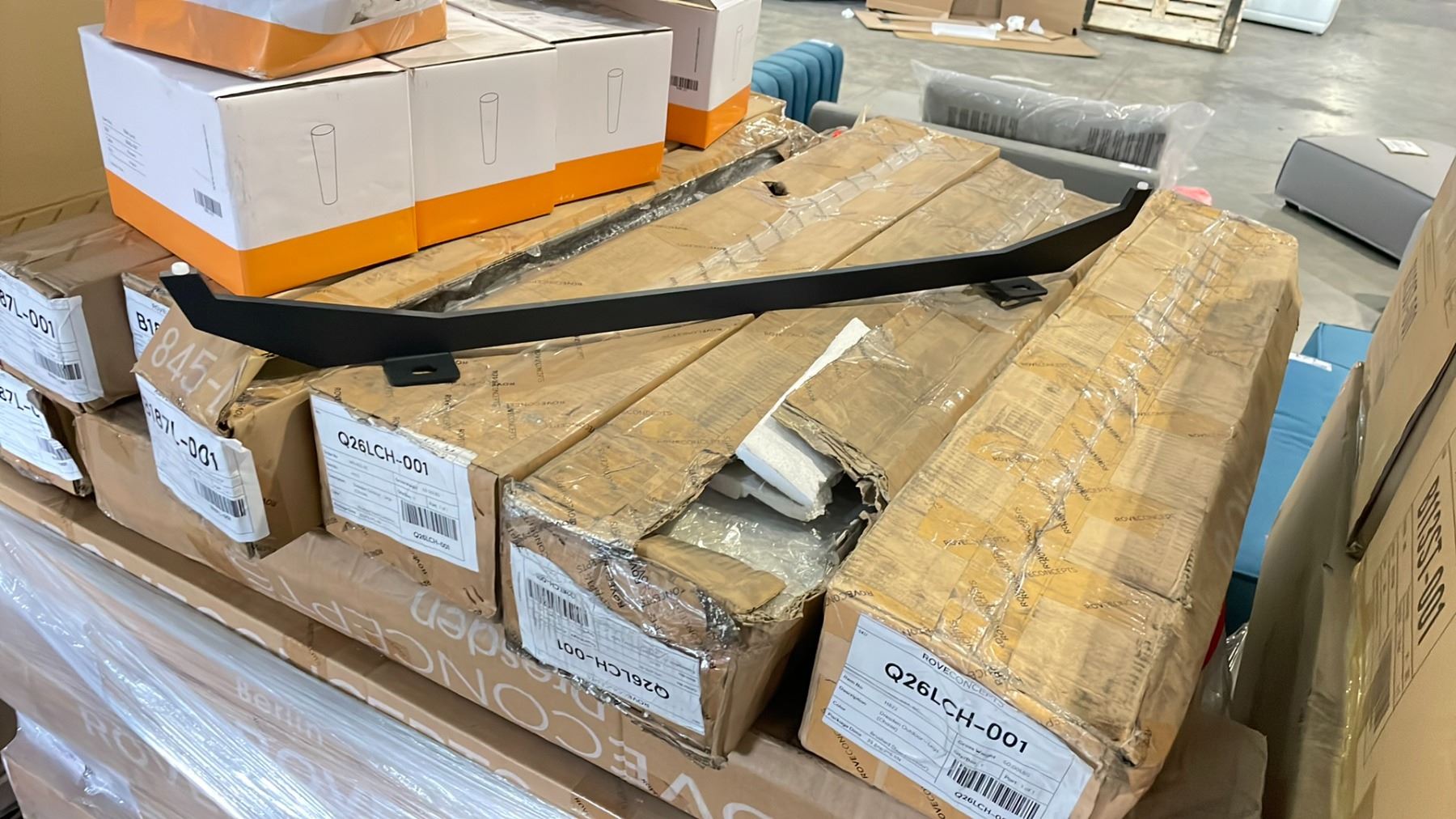 PALLET OF ROVE CONCEPTS DESIGNER DRESDEN, BERLIN, & ASSORTED INDOOR / OUTDOOR CHAISE / SECTIONAL LEGS *LEGS ONLY*