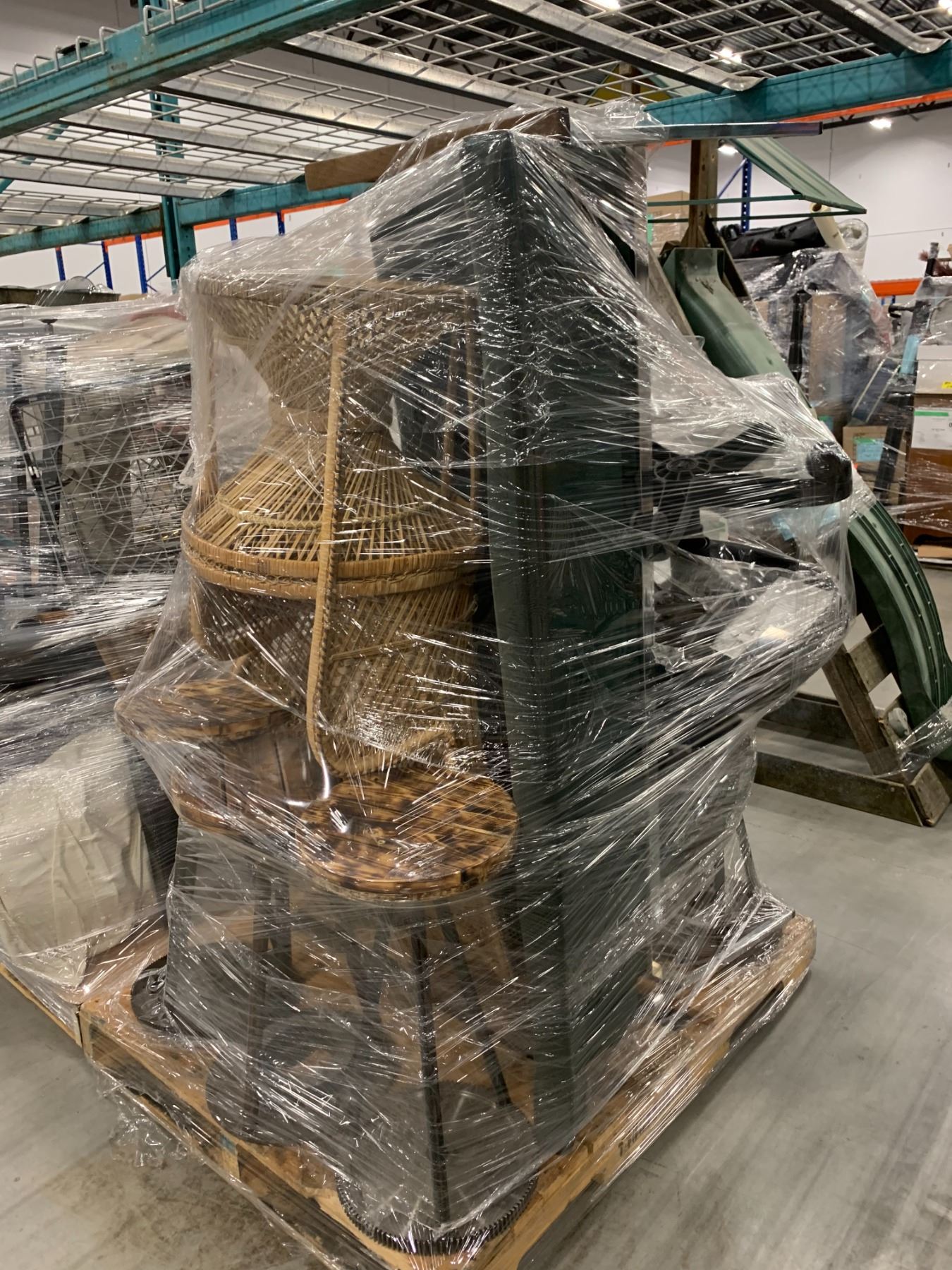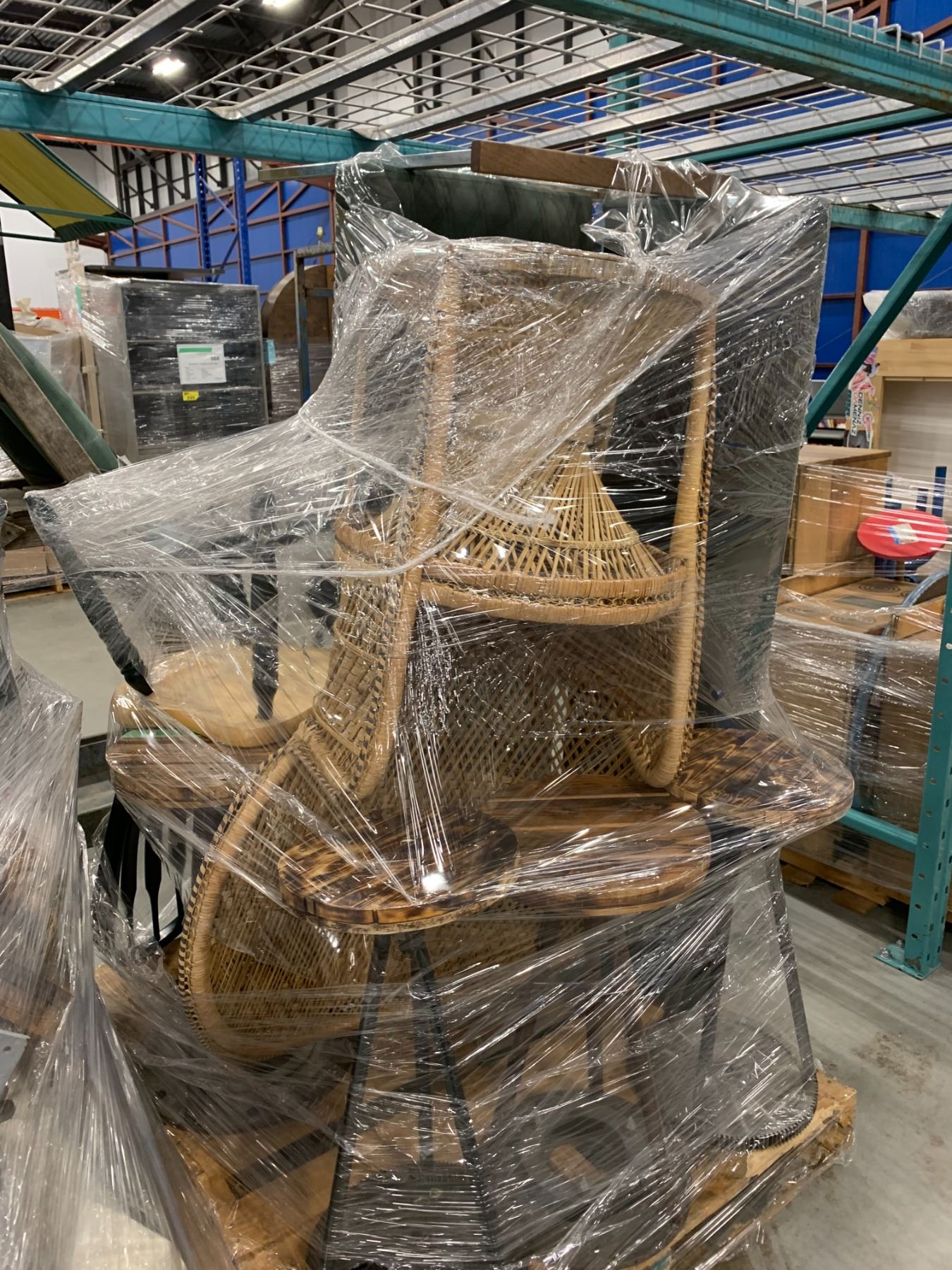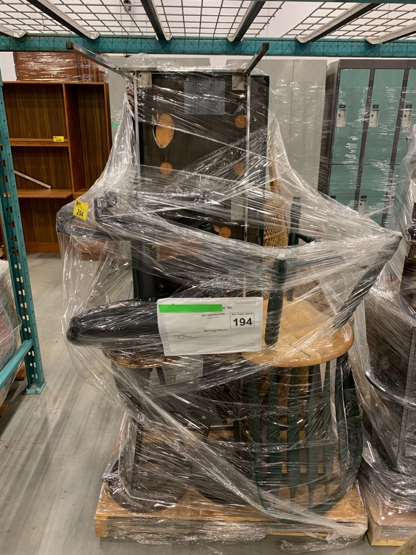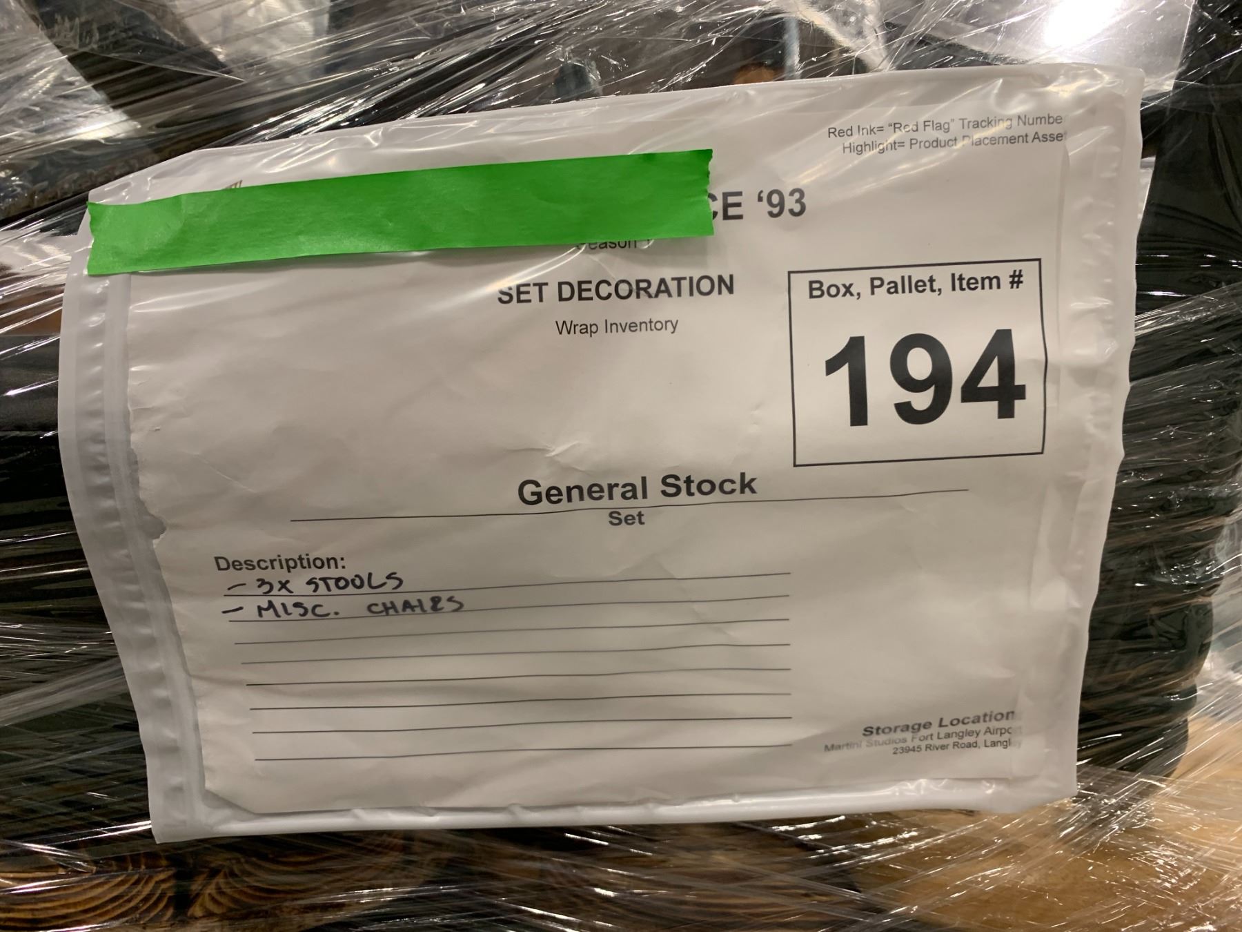 PALLET OF SET DEC ITEMS INCLUDING; ASSORTED CHAIRS AND STOOLS