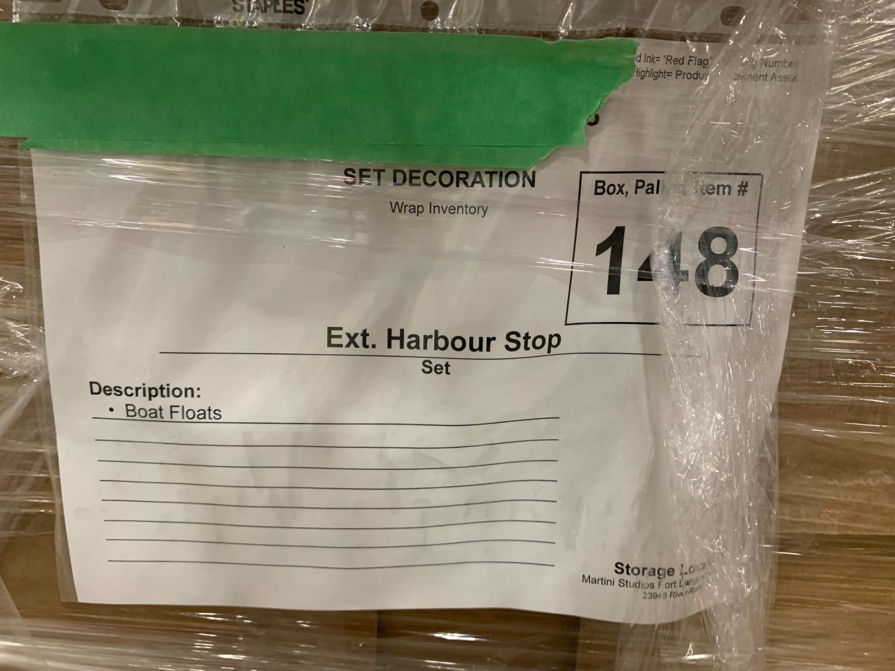 PALLET OF SET DEC ITEMS INCLUDING; BOAT FLOATS AND BUCKETS