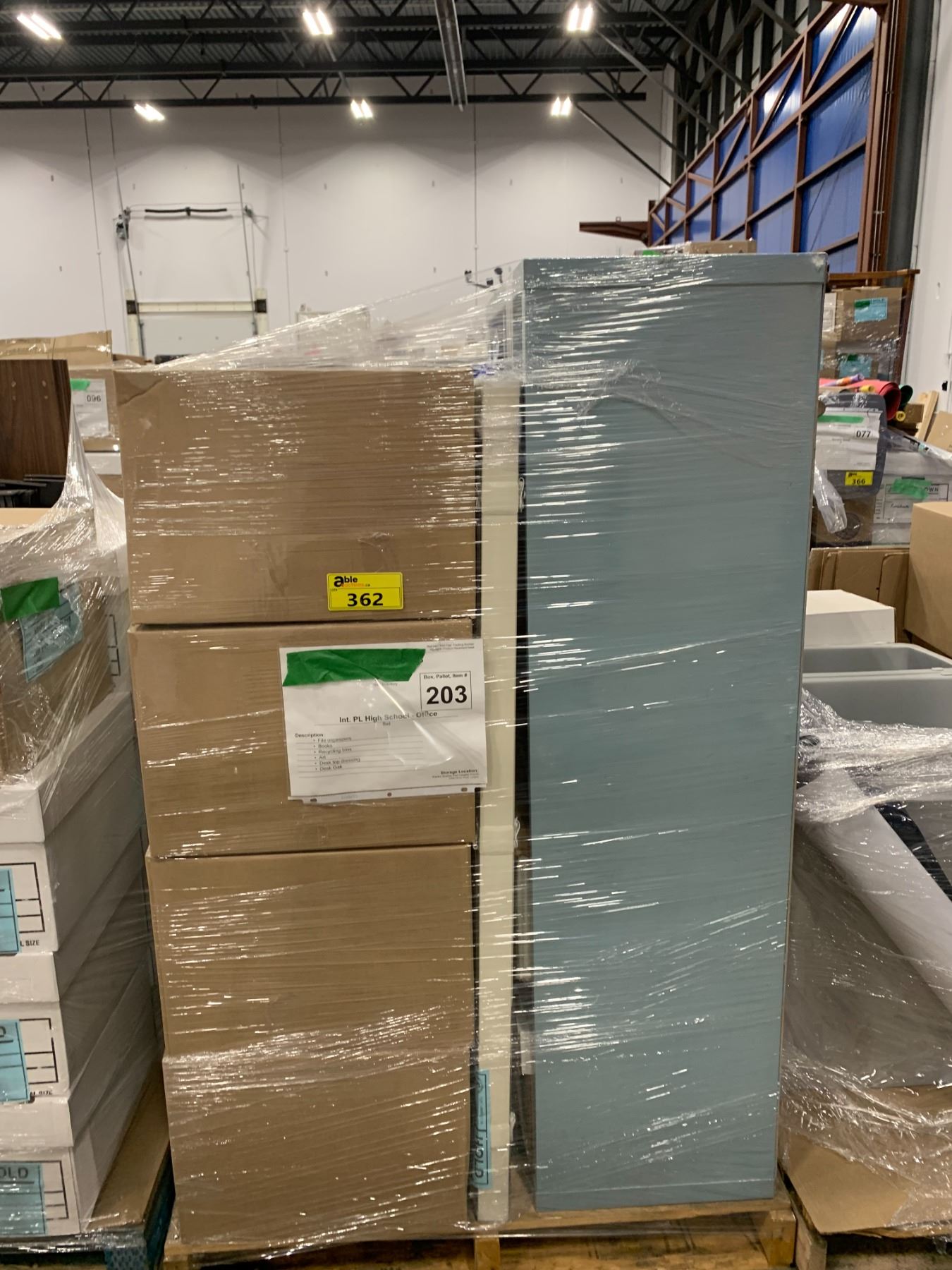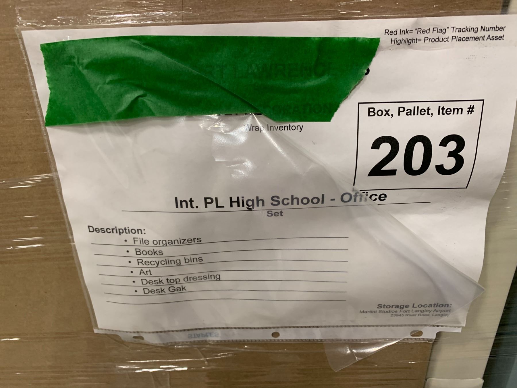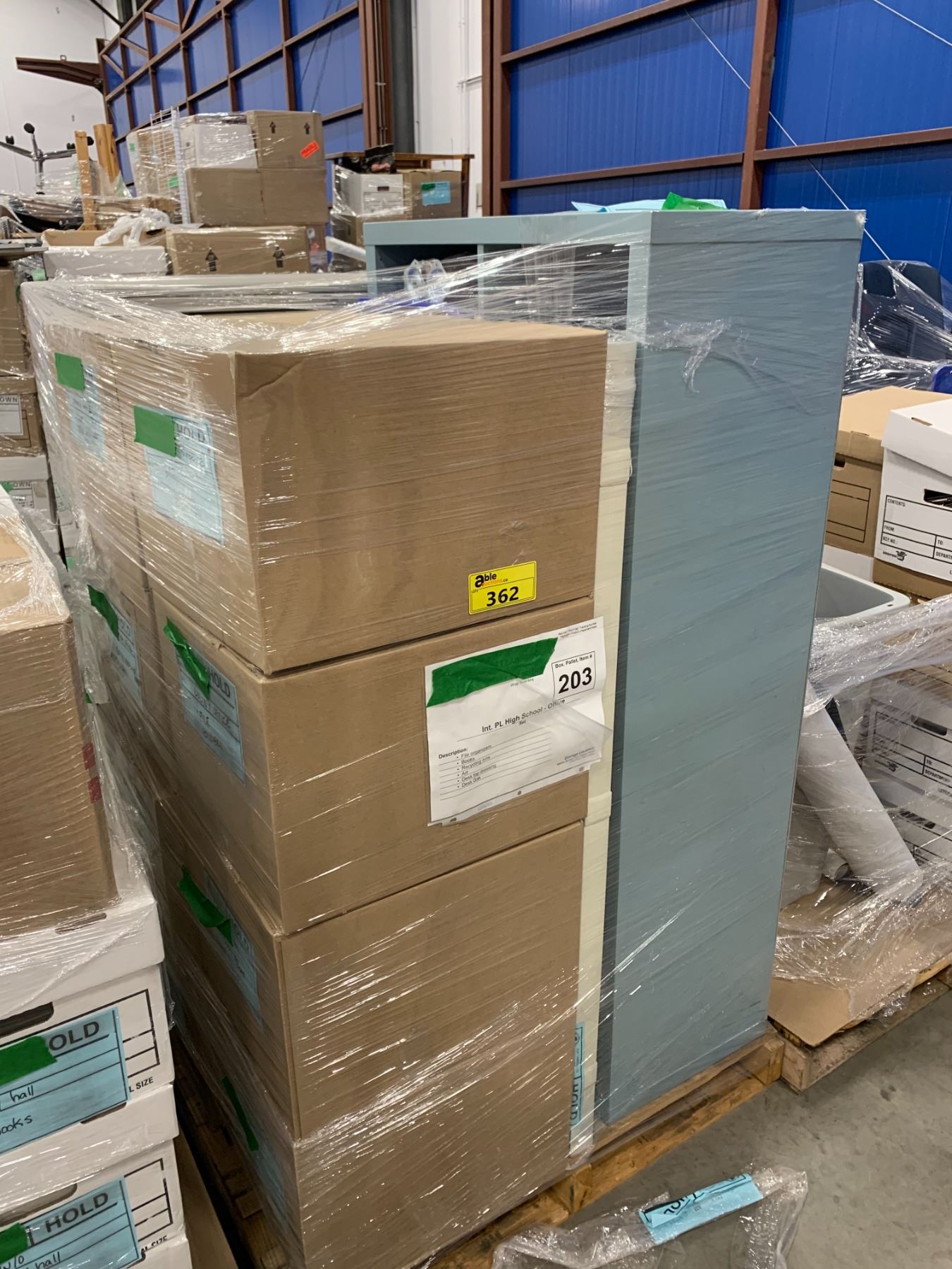 PALLET OF SET DEC ITEMS INCLUDING; FILE ORGANIZERS, RECYCLING BINS, ART AND MORE