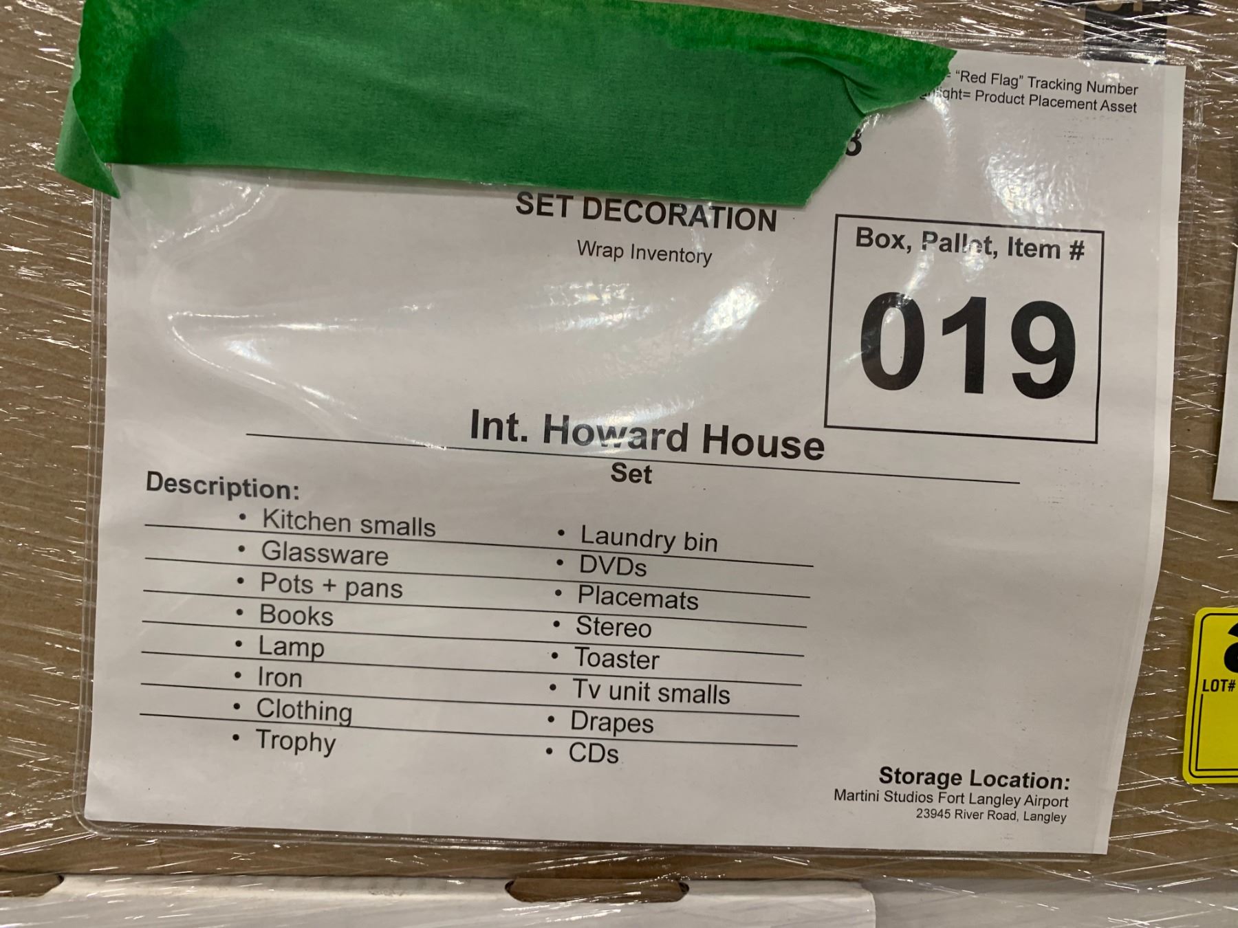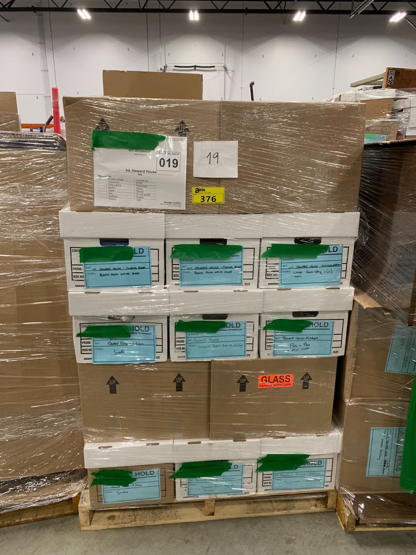 PALLET OF SET DEC ITEMS INCLUDING; GLASSWARE, POTS AND PANS, DRAPES, CDS AND MORE